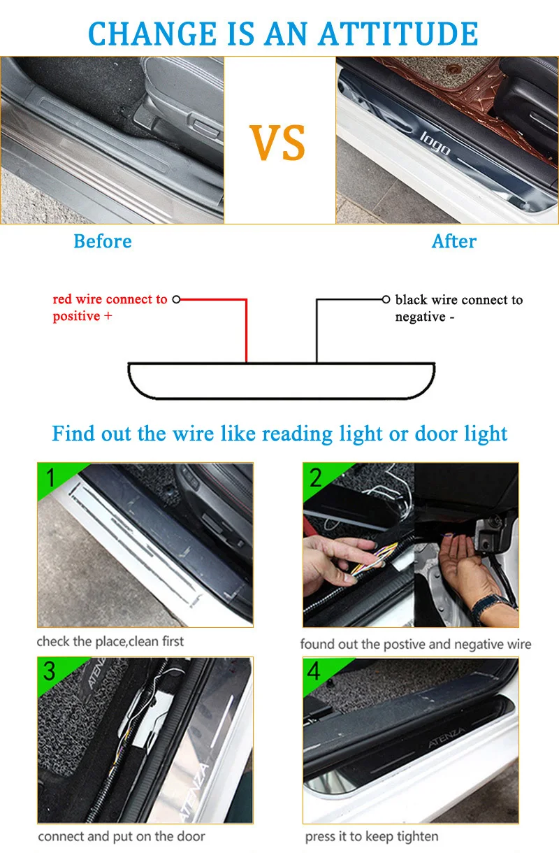 Подвижная светодиодная подсветка для автомобиля, Накладка на порог ...