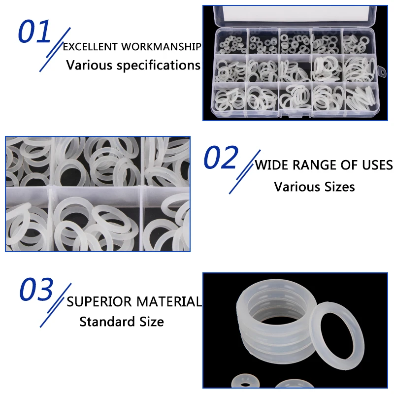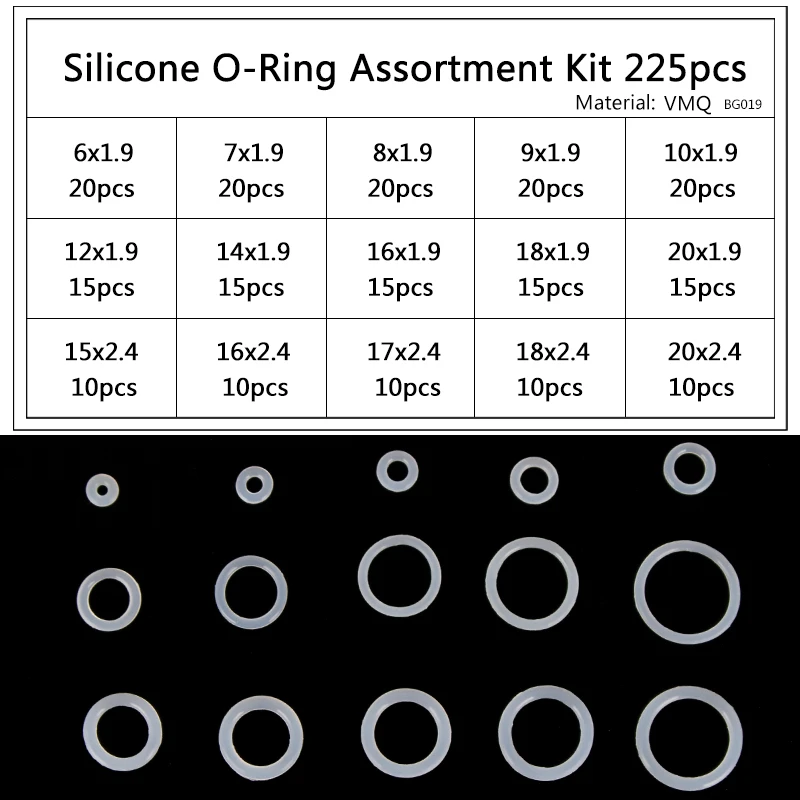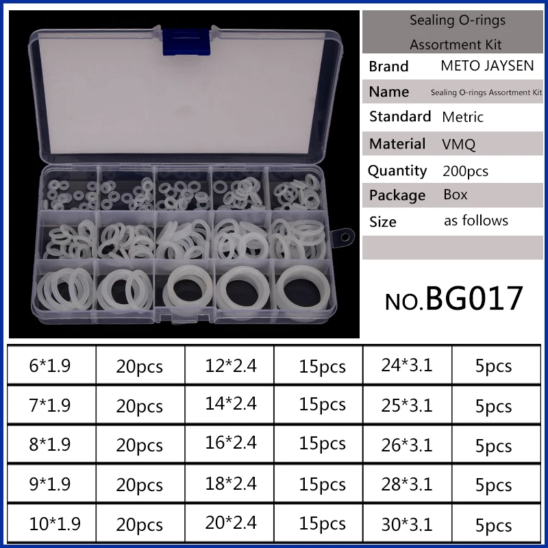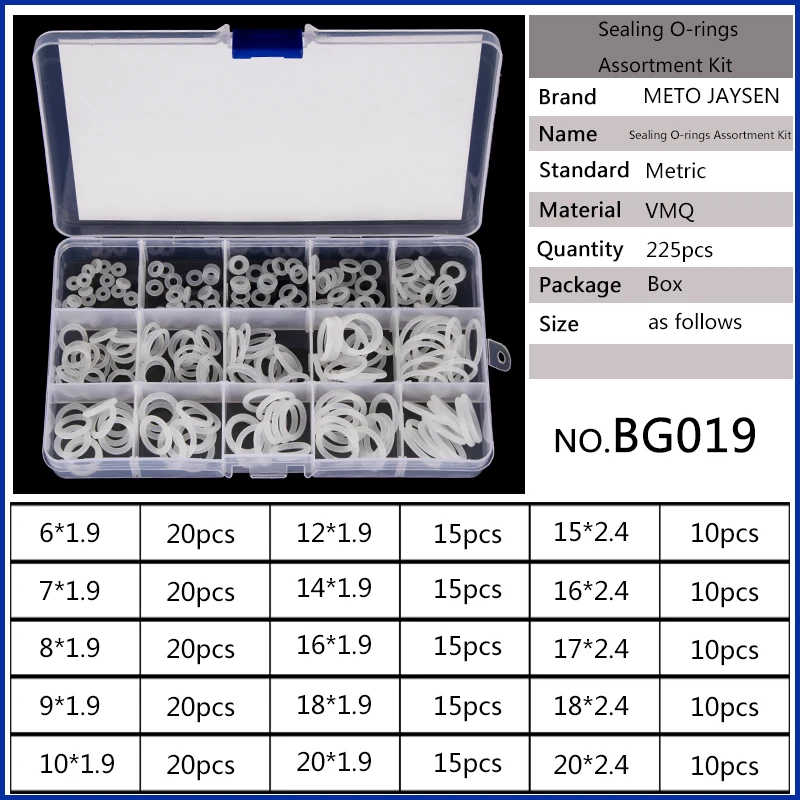 Наименование: набор уплотнительных колецМатериал: NBR (Нитриловый каучук) или VMQ (силиконовый каучук) или FKM (Фтор каучук) на выборРазмер изделия: ID x CS или OD x CS (советы: OD = ID + 2CS)Применение: набор ассортиментных уплотнительных колец для герметизации для замены или ремонта.Посылка: 1 коробка набора уплотнительных колец