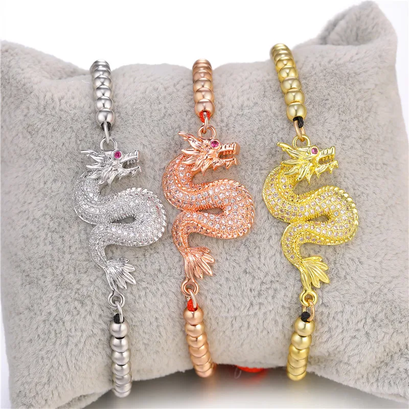 Ювелирные изделия-талисманы Juya, регулируемые цепочки из циркония с микро закрепкой золотистогорозового золота, браслеты с драконом для мужчин и женщин