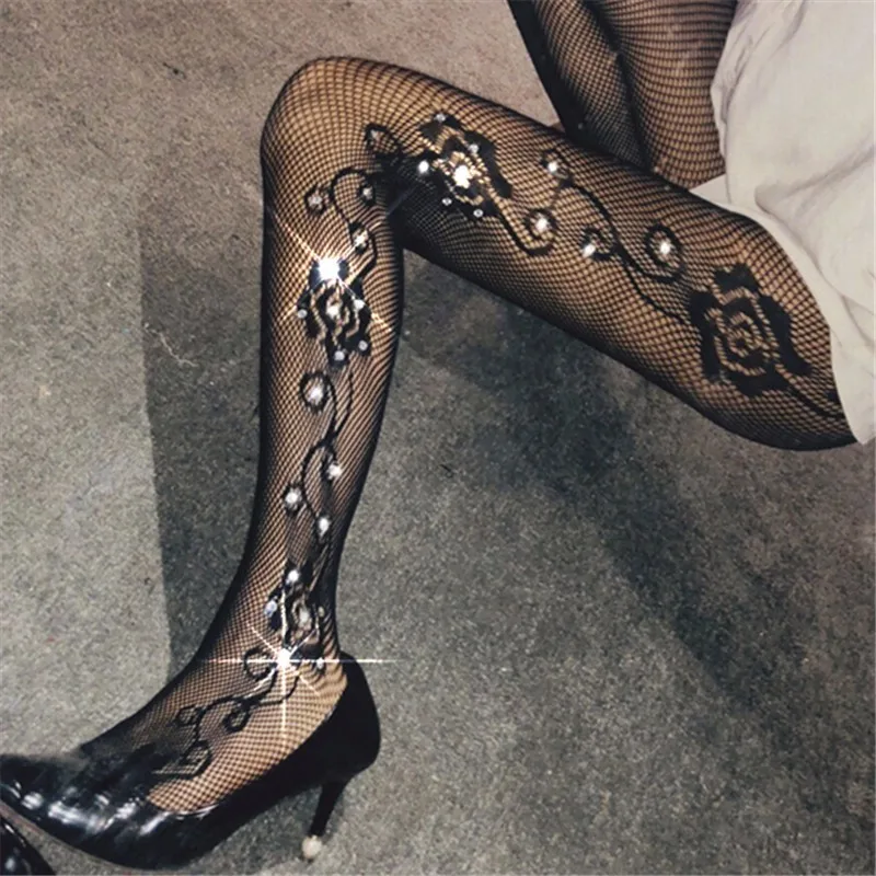 Сексуальные женские чулки, колготки, блестящие стразы, сетчатые колготки в сеточку, блестящие черные Чулочные изделия со швом сзади, Femme Calcetines Mujer SW143