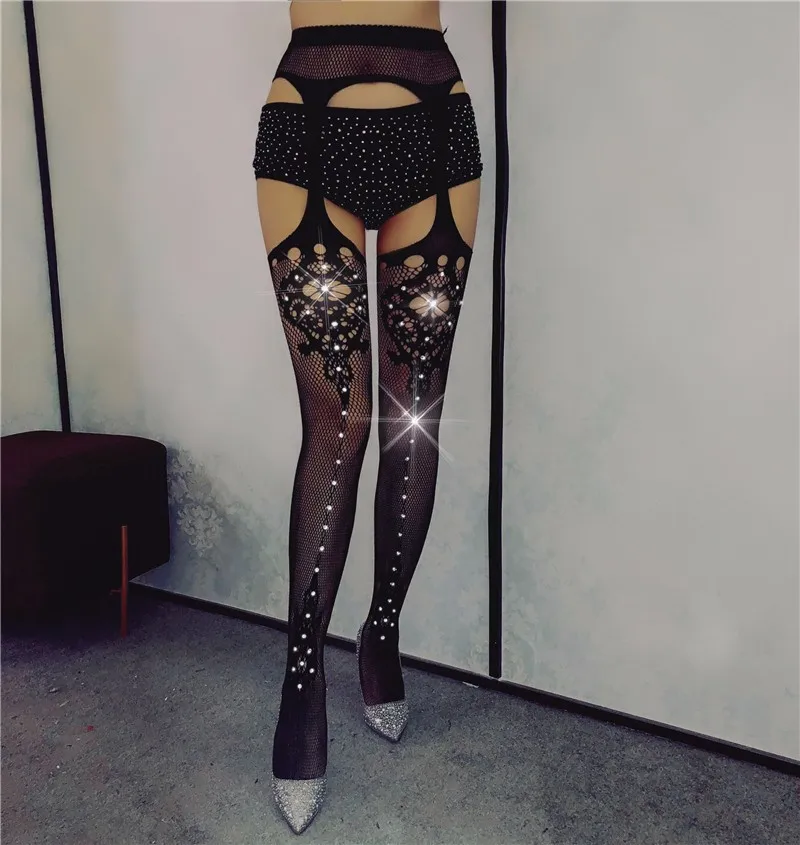 Колготки со стразами, сексуальные женские чулки, сетчатые колготки,...