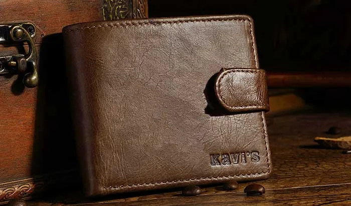 Кошелек KAVIS из натуральной кожи, мужской кошелек с застежкой, пор...