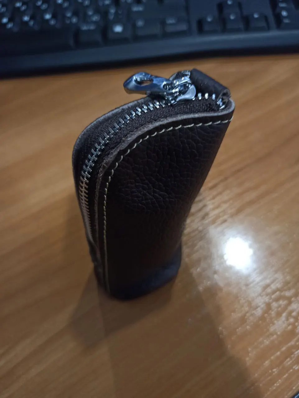 доставка почти месяц. Цвет чехла отличается от фото, по факту цвет красно-коричневый. Но мне очень понравилось качество кожи. Кожа мягкая, очень приятная на ощупь. Чехол вместительный, поместилась большая связка ключей, в том числе ключ длиной 9 см. Товар и продавца рекомендую