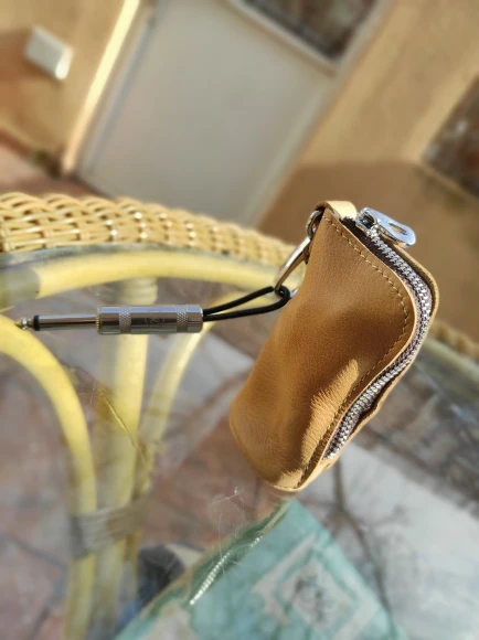 Пахнет кожей, надеюсь это кожа натуральная, так как до этого заказывала подобного плана и она потрескалась((( размер маленький, но самый длинный ключ помещается