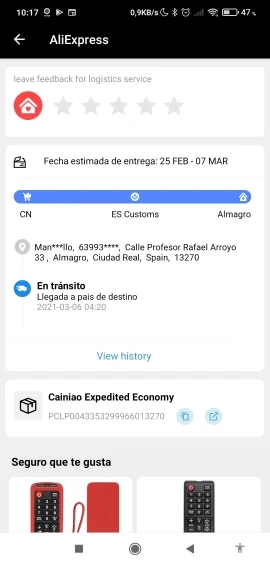 Страна: ES Доставка: Cainiao Expedited Economy 12.04.2021