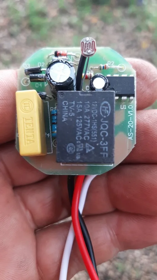 Хорошее фотореле. Срабатывает от смены уровня освещённости чётко. Есть задержка на включение - 3 секунды и на выключение - 8 секунд. Регулировки порога срабатывания реле нет, даже на плате. Диаметр колпака - 65 мм. Колпак надёжно фиксируется специальными выступами, и в то же время легко снимается, после небольшого поворота вокруг своей оси. Доставка до Архангельской области 20 дней. Товар и продавца рекомендую.