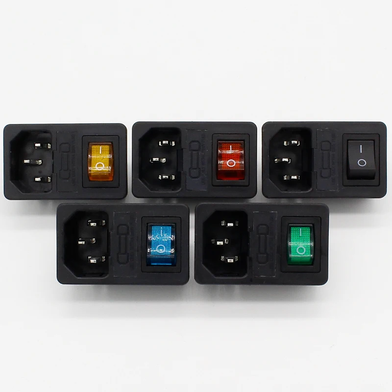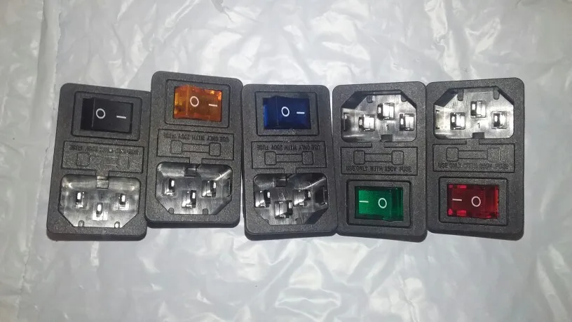 Латунные детали! 5 шт.! С предохранителем 10А! Многоцветный кулисный выключатель с плавким предохранителем IEC 320 C14 Входной разъем питания предохранитель переменного тока