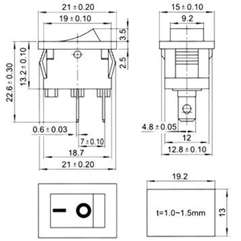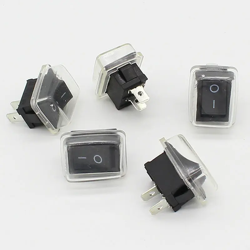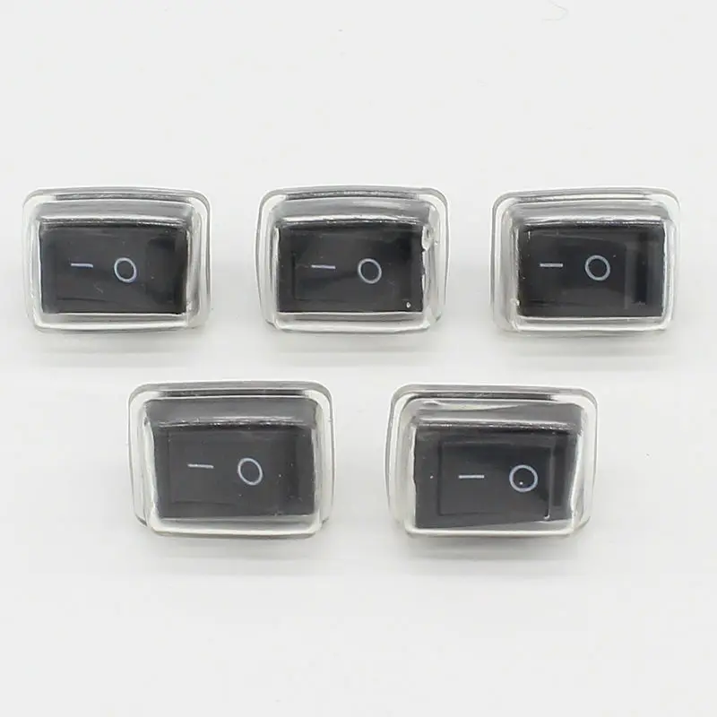 5 шт.лот, черный кнопочный мини-переключатель 6A-10A 110 в 250 В, 2-контактный клавишный переключатель вкл.выкл., 21 мм * 15 мм, с водонепроницаемой крышкой, черный