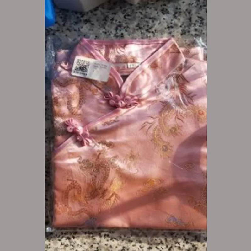 Подождите 2 месяца, но прибыл наконец. Небольшой дефект материала, но в катушке ничего плохого. Кроме того, китайское платье beatyfull на ночь или в качестве повседневного использования для моего дедушки. Обратитесь к продавцу, спасибо.