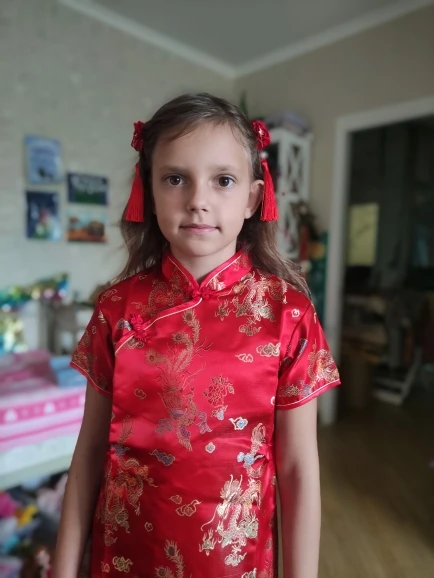 Красивый материал, но платье не подходит для нашего 51/ 2 года. Возможно, вам следует измерить талию и грудь для вашей одежды.
