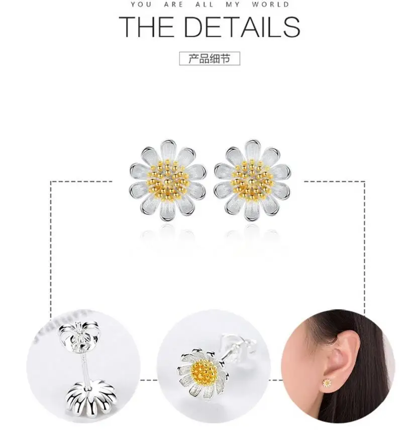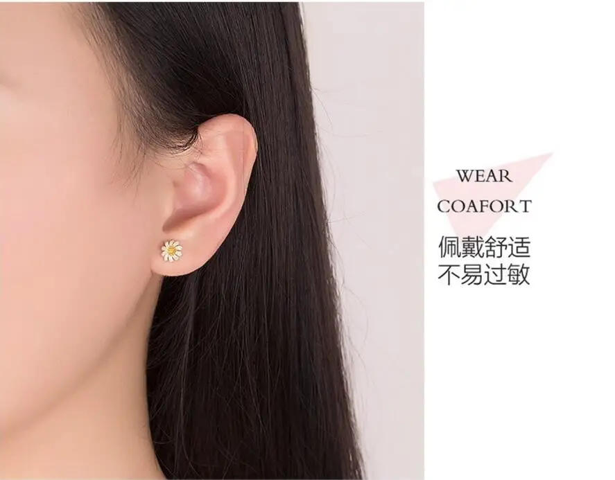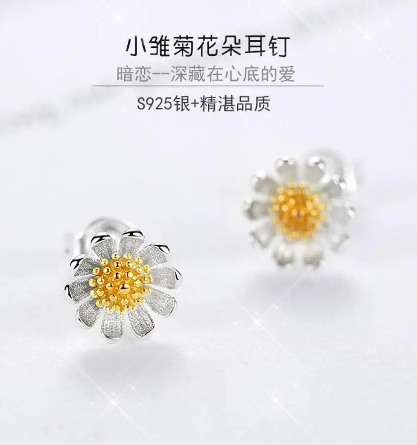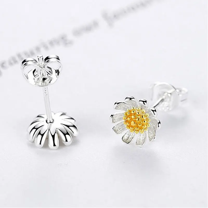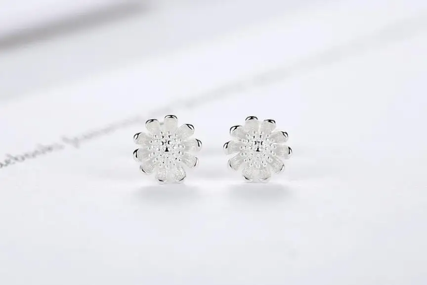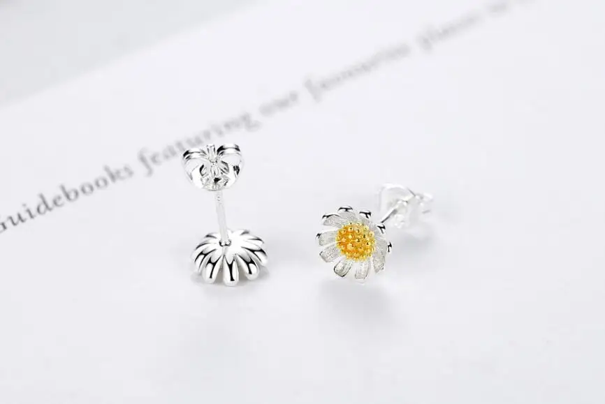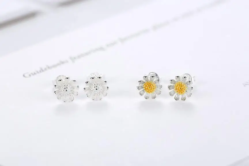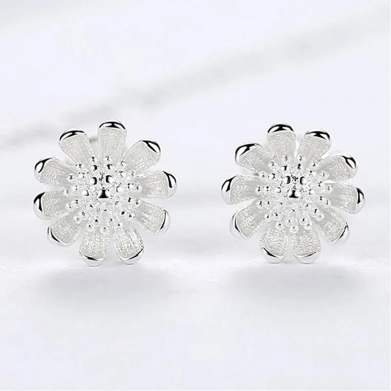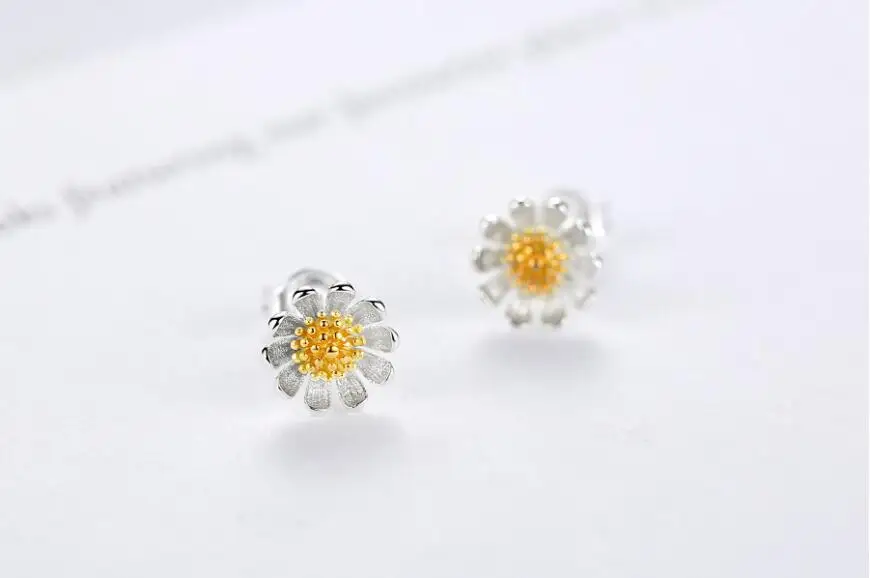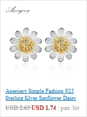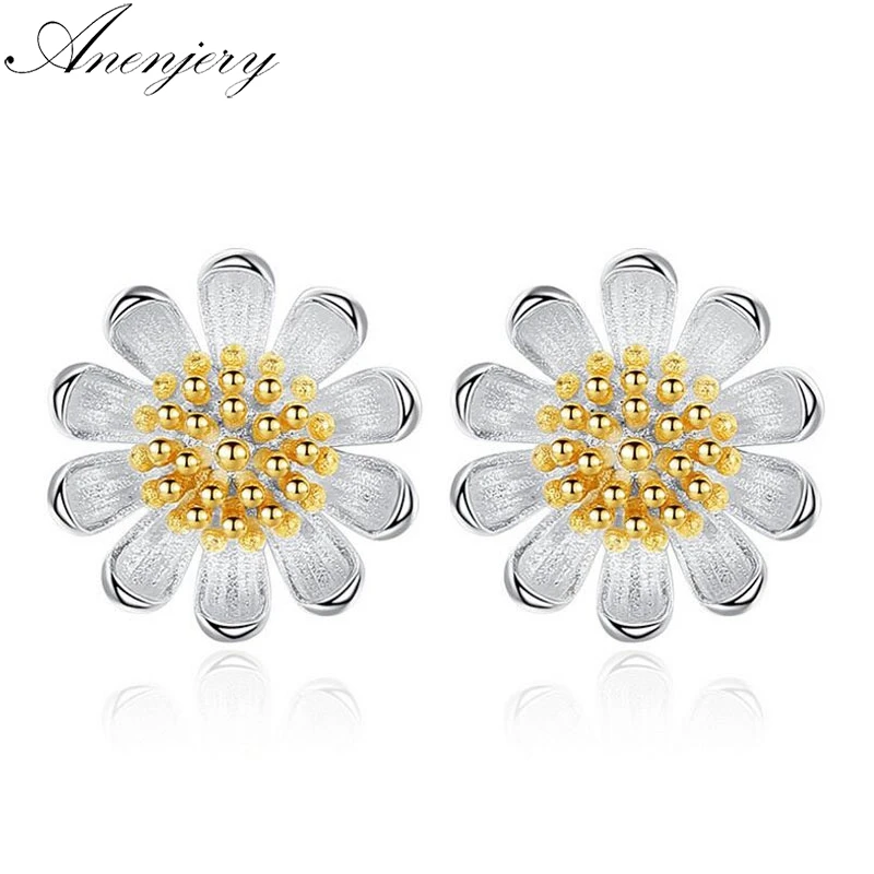 Женские серьги-гвоздики с подсолнухом ANENJERY, из стерлингового серебра 925 пробы, ювелирные изделия, S-E513