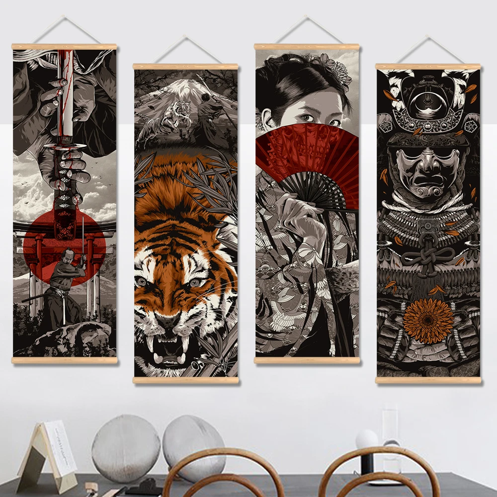 Постер в свитке с японским Самураем укиео, Картина на холсте, настенный Декор для дома, картины для украшения гостиной, спальни, картина в свитке