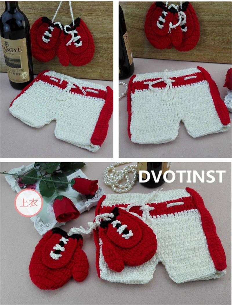 Детские Боксерские штаны и перчатки, вязаные крючком, мягкие, для новорожденных