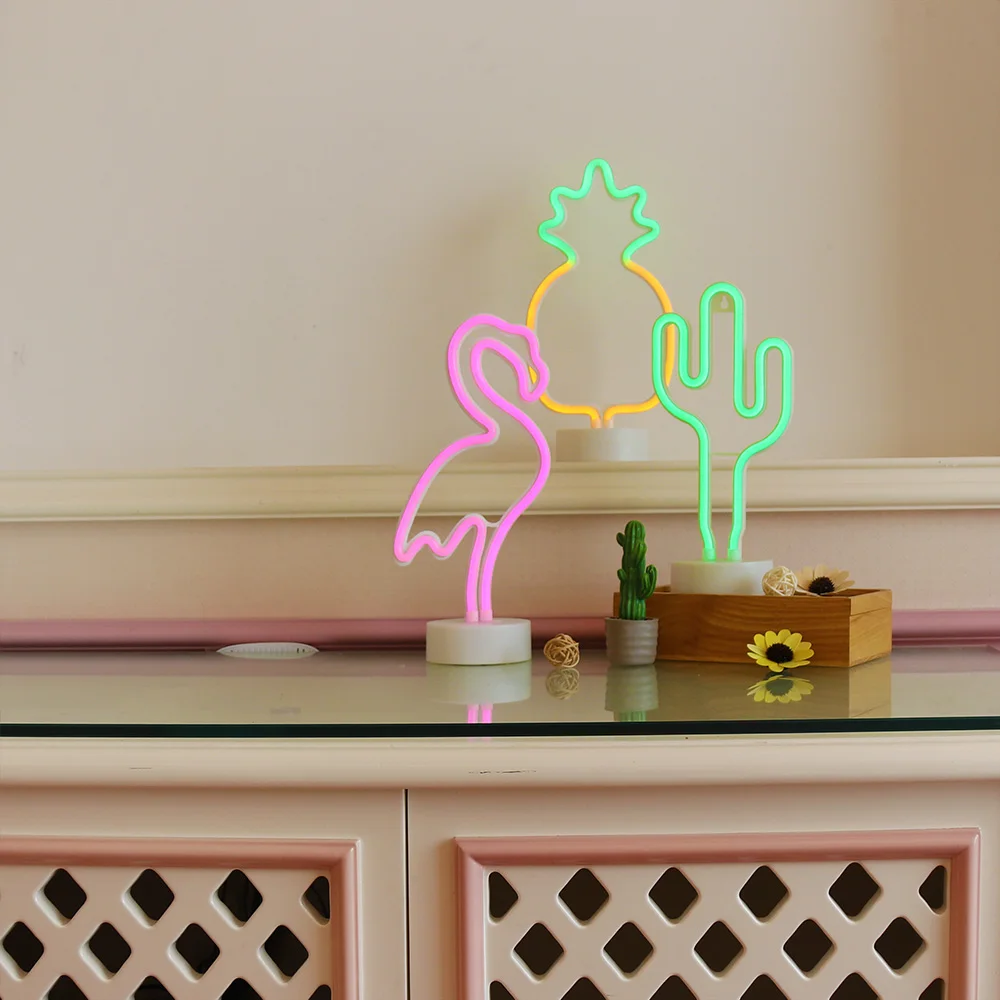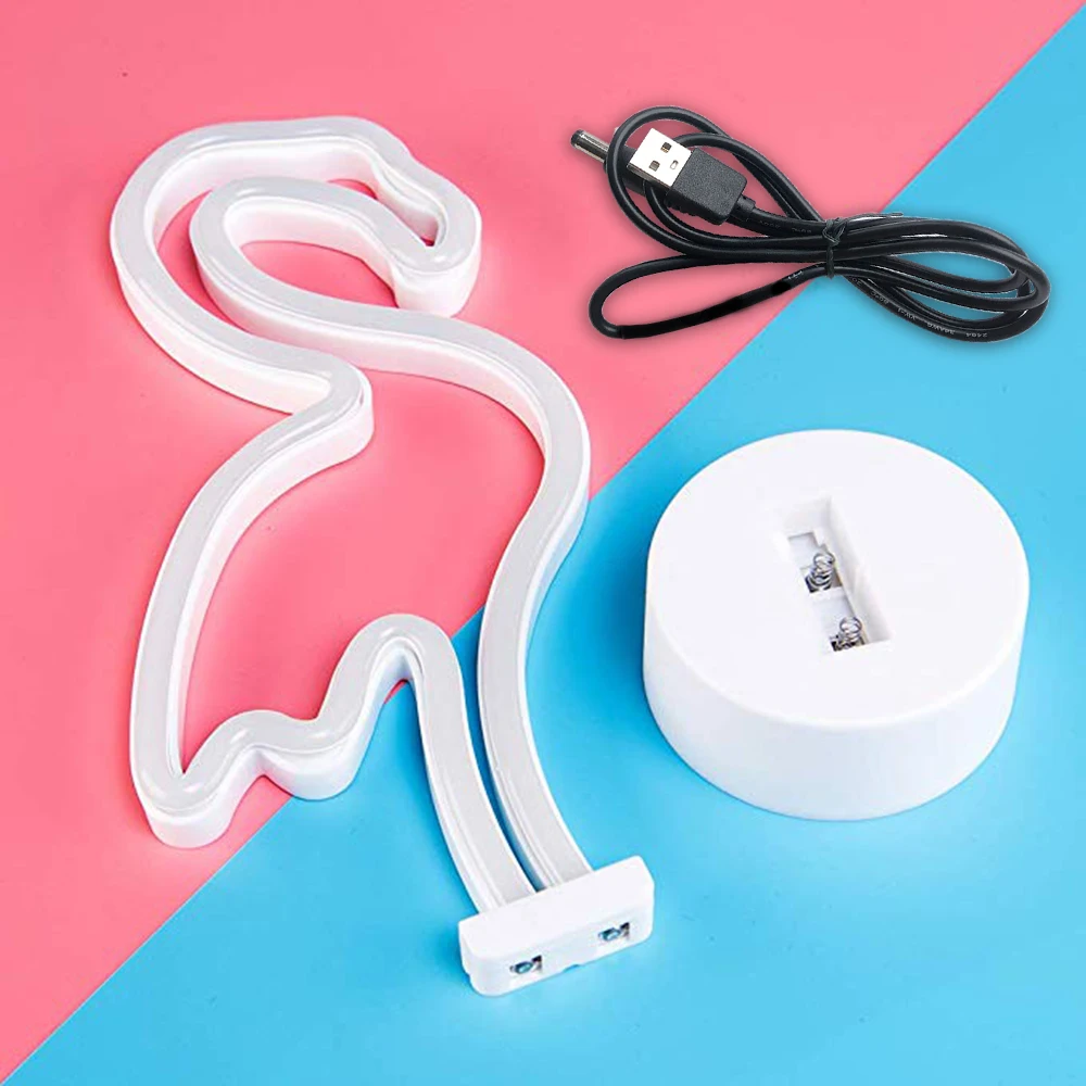 Творческий ярко-розовый Фламинго неоновые светодиодный Ночные огни Батарея Мощность и USB разъёмом в неоновая вывеска для организаций и магазинов вечерние дома Спальня осветительных элементов декора