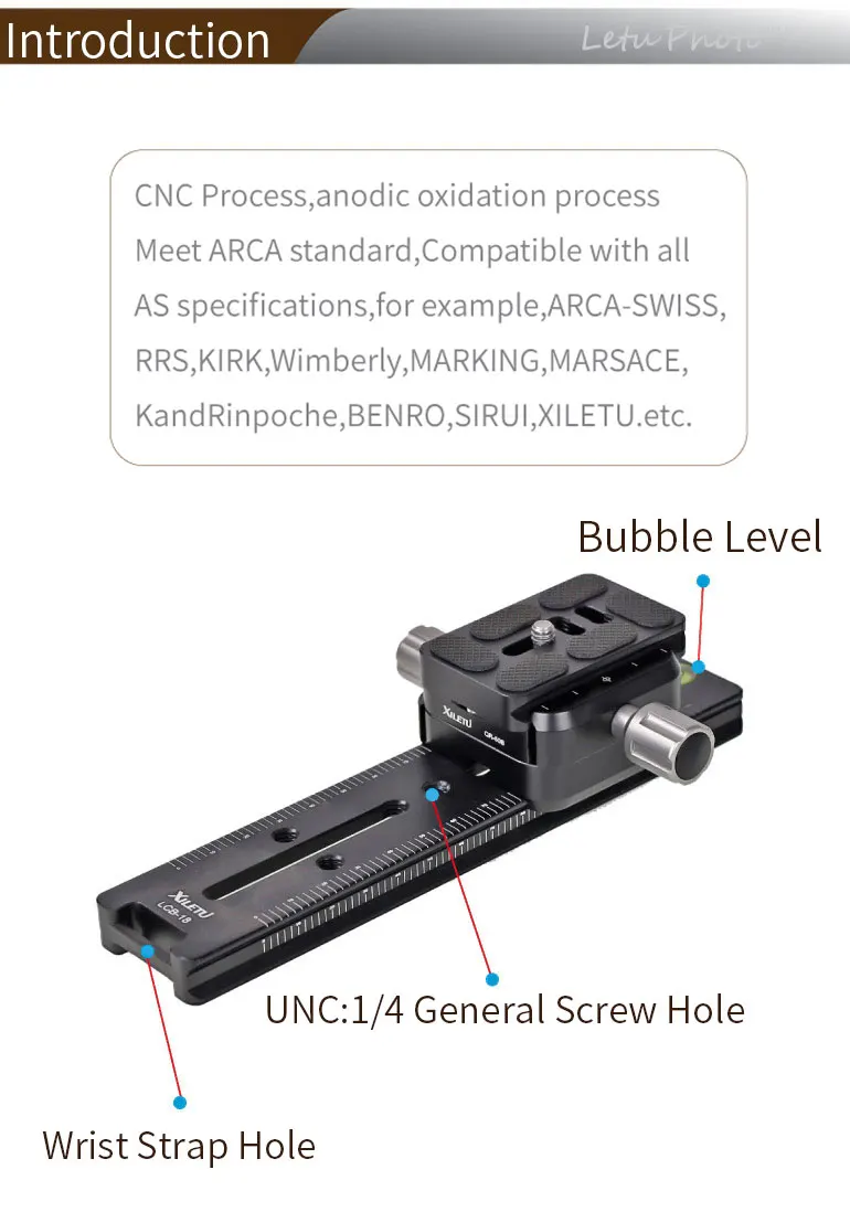 Слайдер XILETU LCB-18B, рельсовая направляющая для фокусировки, зажим и QR-пластина соответствуют стандарту Arca Swiss для камеры DSLR Canon