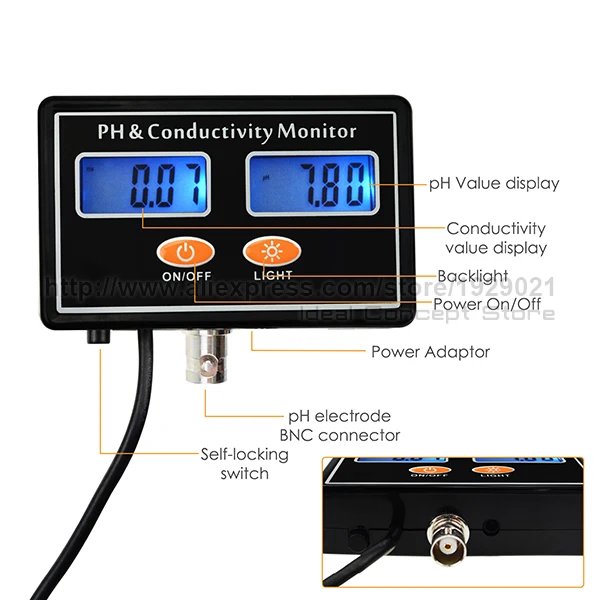 Онлайн PH EC Измеритель проводимости тестер ATC, качество воды в реальном времени непрерывный мониторинг, для аквариума, пруда