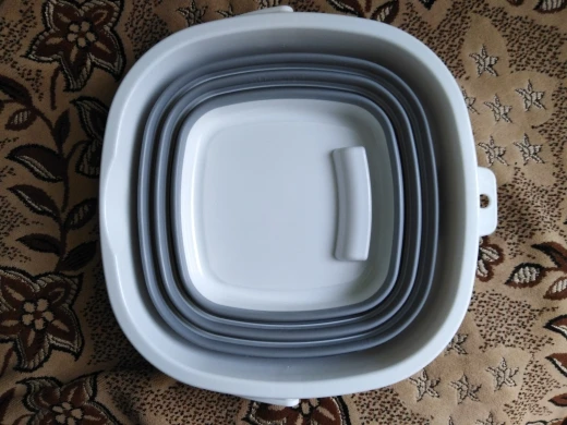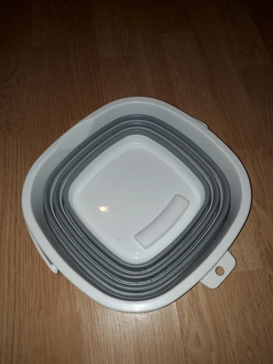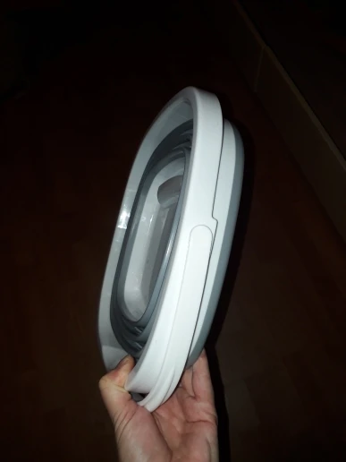 складывается и раскладывается за счет силиконовых вставок, достаточно туго, так что боюсь часто это делать не стоит - могут перетереться и повредиться. в остальном - то, что и ожидалось - удобно и компактно. запах, правда, пока очень сильный - так это ж пластик