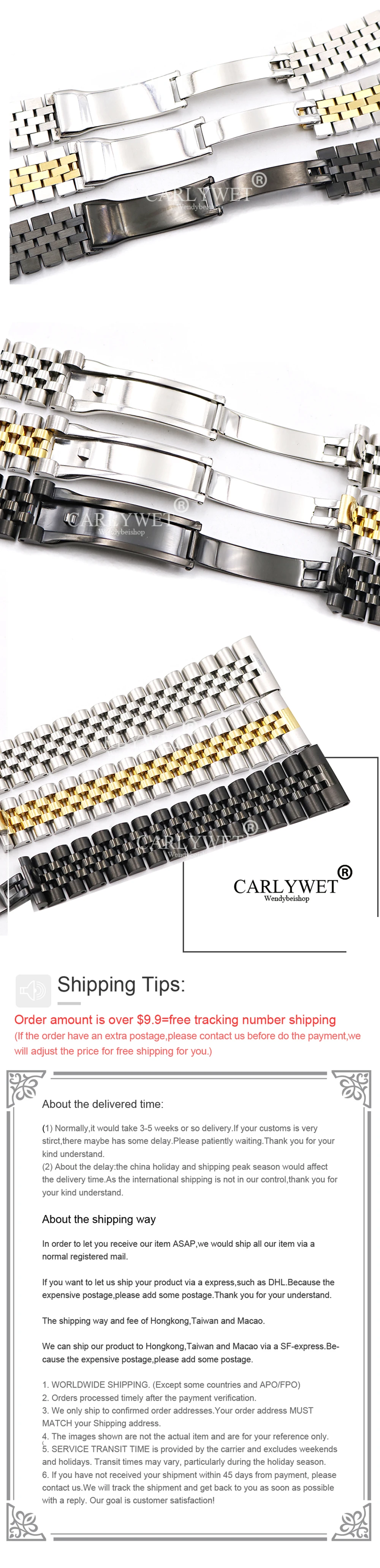 Ремешок для часов CARLYWET из нержавеющей стали, сменный ремешок для часов 20, 22 мм, ремешок для браслета для часов roupal Datejust Daytona MILGAUSS Omega IWC Tag