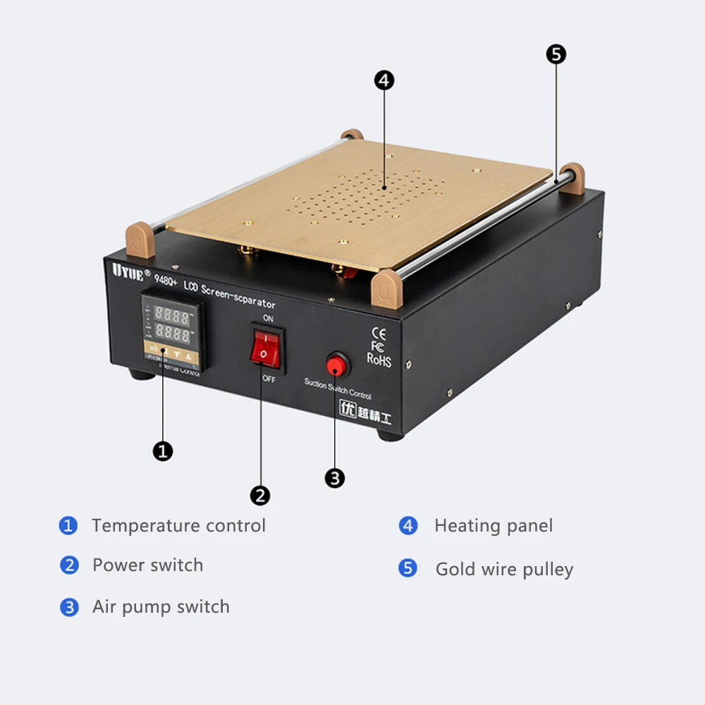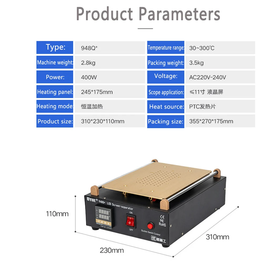 S с вакуумным насосом внутри, чтобы присосать ЖК-дисплей до горячей пластины, так что вам не придется иметь проблемы при зажиме ЖК-дисплея вниз это новейшая модель также хорошо подходит для любой стороны ЖК-телефона