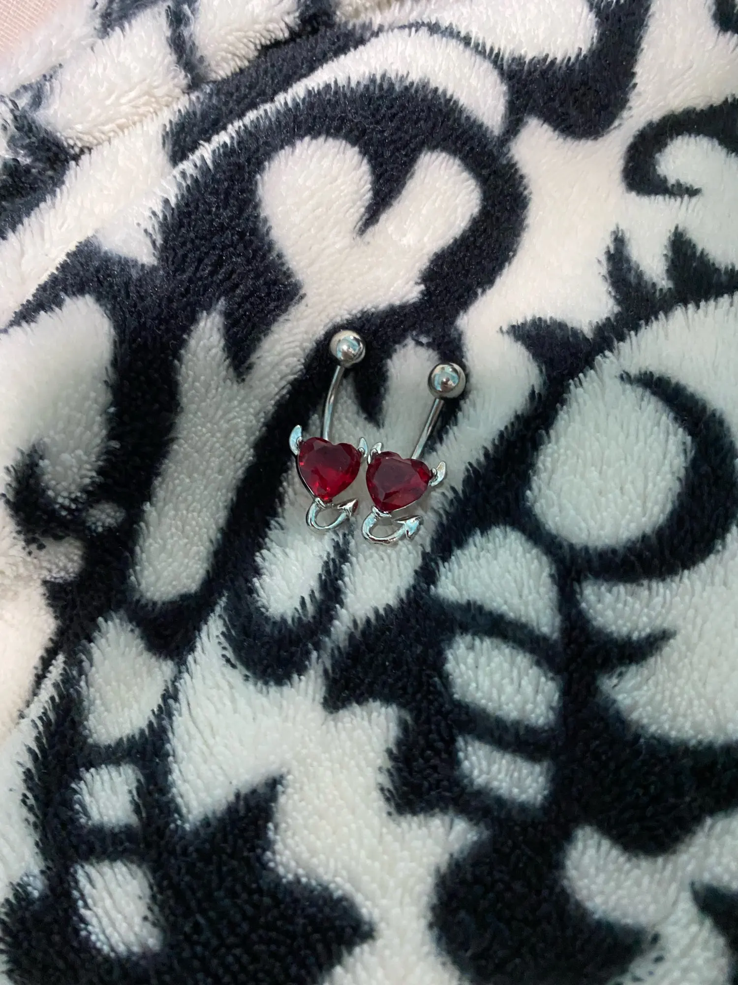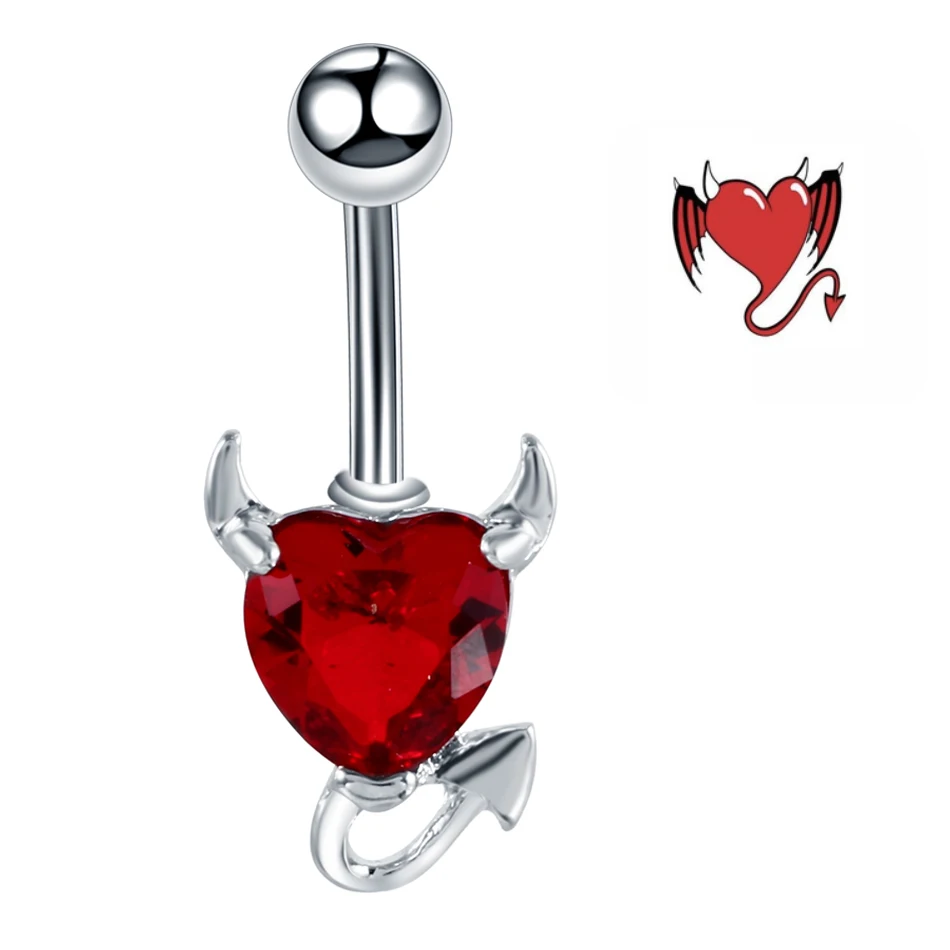 Кольцо-пуговица для пирсинга пупка женское, стальное украшение с гранатом в форме сердца с кристаллом циркония, дьявол, любовь, сердце, Модная бижутерия, 1 шт.