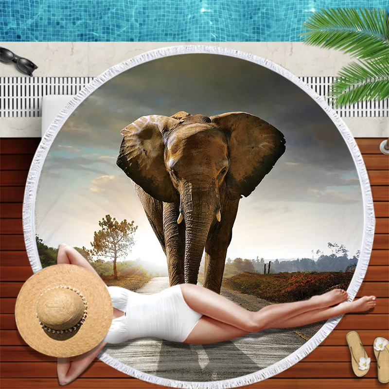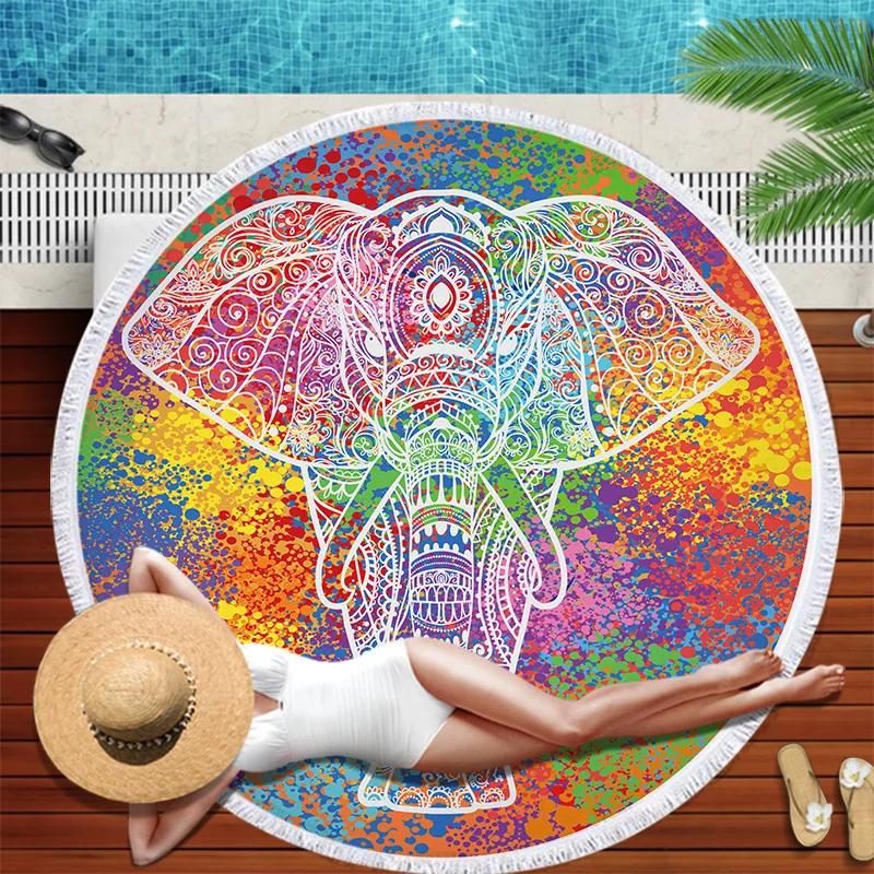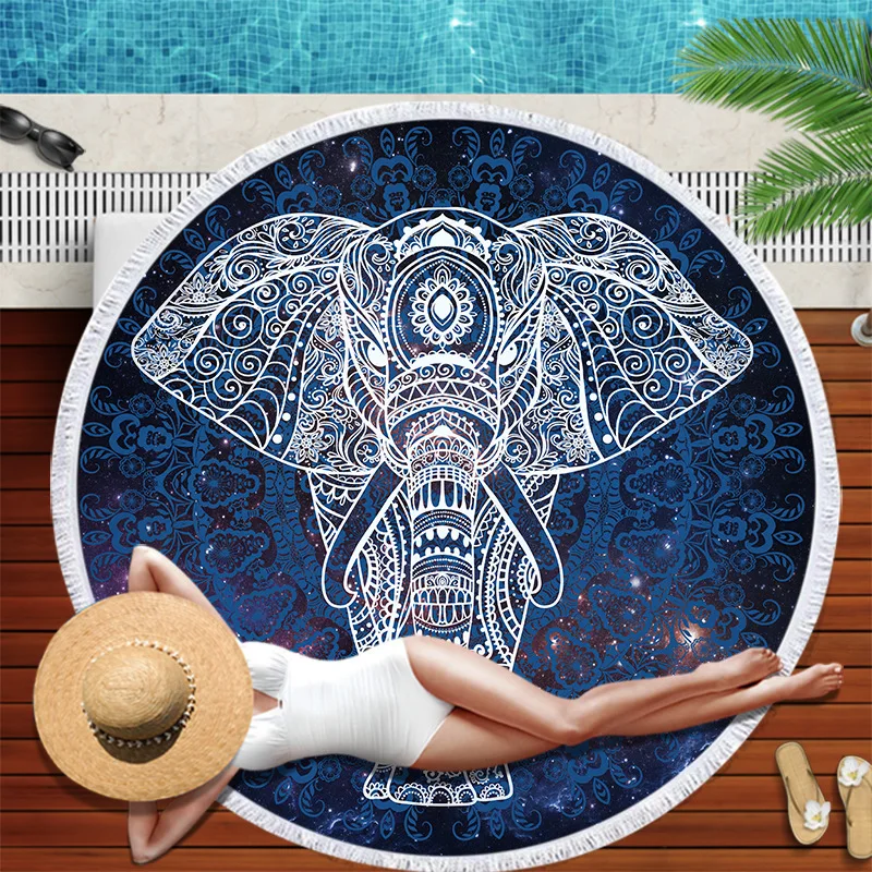 Взрослое пляжное покрывало для йоги Слоник принт 150 см круглый микрофибра пляжное полотенце с кисточками платок для ванной толстый коврик для пикника гобелен