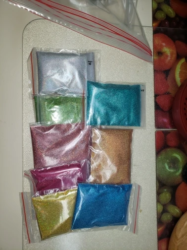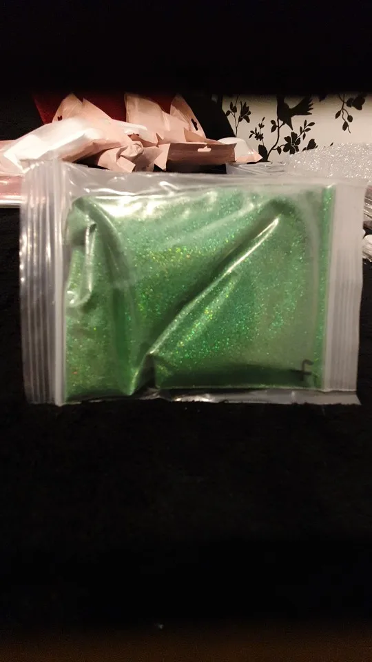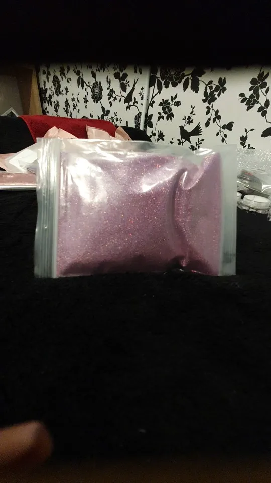 Посылка занимает все время, чтобы прибыть, но прибывает в целости и сохранности. Упаковка хорошо упакована в двойной герметичный пакет и две другие пузырчатые пакеты. Глянцевый фиолетовый блеск, тонкий, подходящий вес. Я буду использовать его для поделок. Я рекомендую его.