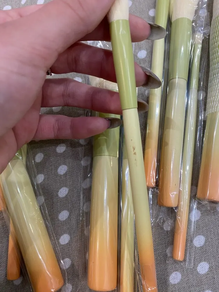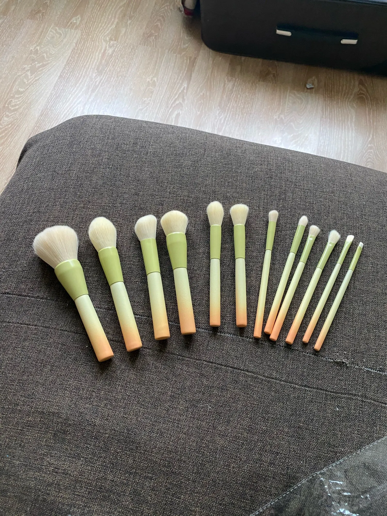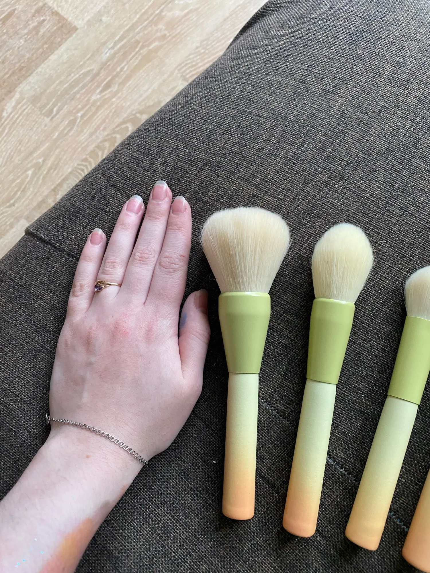 отличные кисти! с некотрых вылезли ворсинки, но это ок. также кисть для хайлайтера мне показалась очень тонкой, но а принципе удобно наносить. сами по себе кисти очень мягкие, приятные! по внешнему виду красивые (у меня зелёные ), упакованы были хорошо. берите, не пожалеете! продавцу отдельное спасибо за отзывчивость , пунктуальность и хорошее качество доставки и самого товара :)
