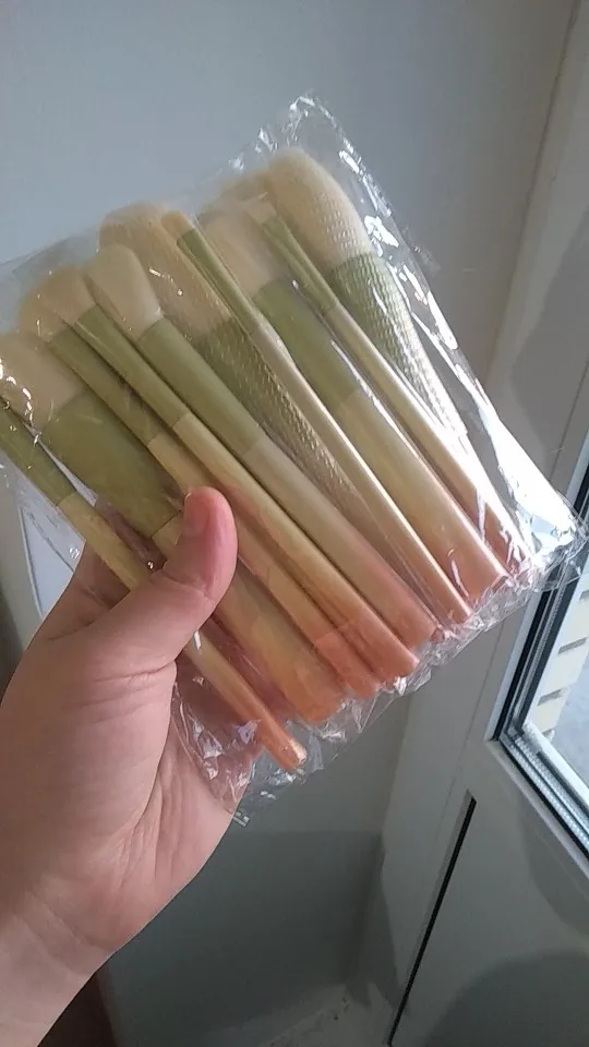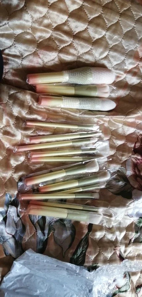 Пришло быстро, до Екатеринбурга примерно за полторы недели. Кисти очень мягкие (или не плотно набиты, не знаю, я в этом не разбираюсь) , это скорее минус, потому что пигмент сложновато набирается, нужно прилагать усилия, НО то, как они приятно наносят косметику перекрывает все внешние недостатки. Ручки деревянные, на кончике немного помятые, но не влияет на качество нанесения, поэтому ничего страшного. В принципе, довольна. Товар рекомендую.