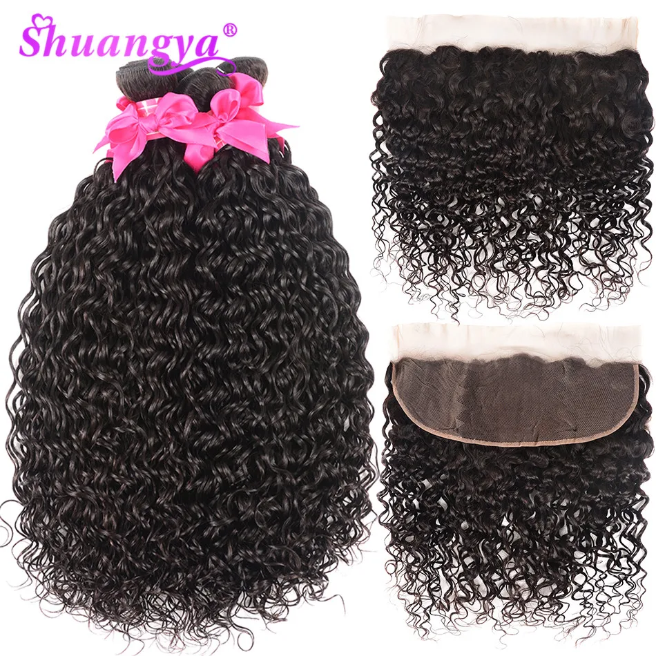 Пучки индийских волнистых волос с фронтальным Remy 13х4 фронтальные с пучками 34 пучки с фронтальным расширением волос Shuangya