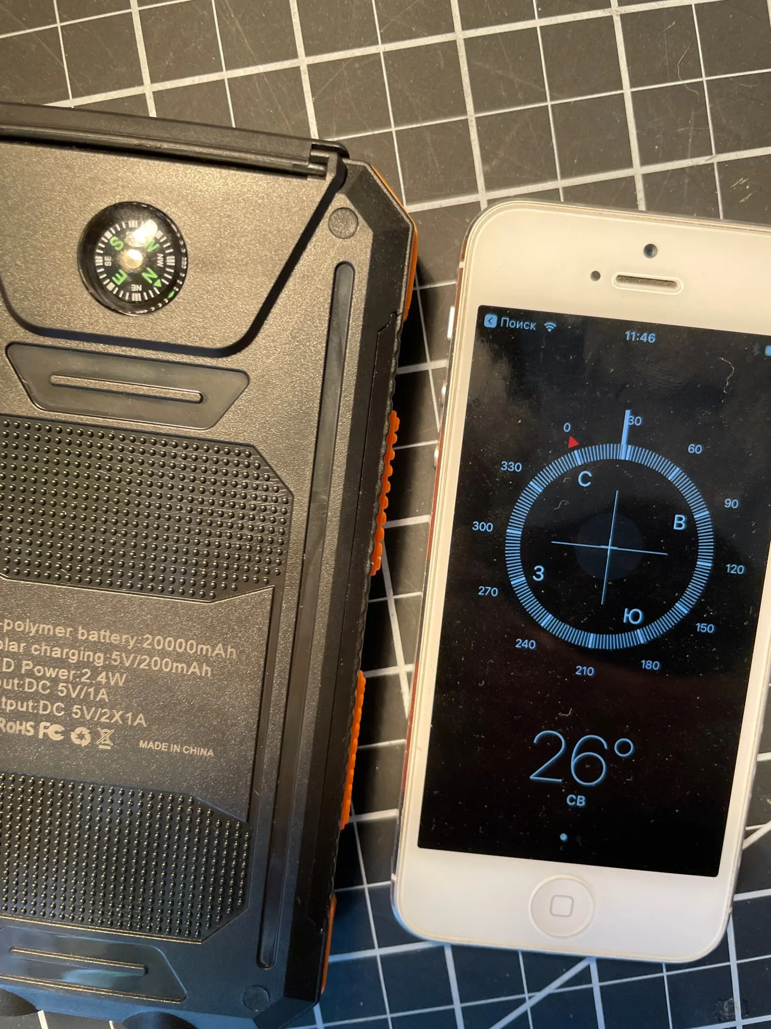 Устройство работает. Ёмкость реальная 8000. Никаких 20К ампер часов нет. Солнечная панель для красоты и не функциональна, как и компас. Есть светодиод загорающийся зелёным когда света достаточно. По факту 3 дня лежал на подоконнике и не зарядил устройство ни на одну шкалу. Обычный повербанк с фонариком. Цена ему 800₽.