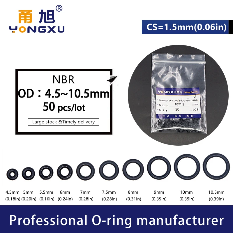 50 шт.лот, черное уплотнительное кольцо NBR CS1.5mm OD44,555.566.577.588.599.51010.5*1,5 мм кольцо уплотнение резиновая прокладка шайба