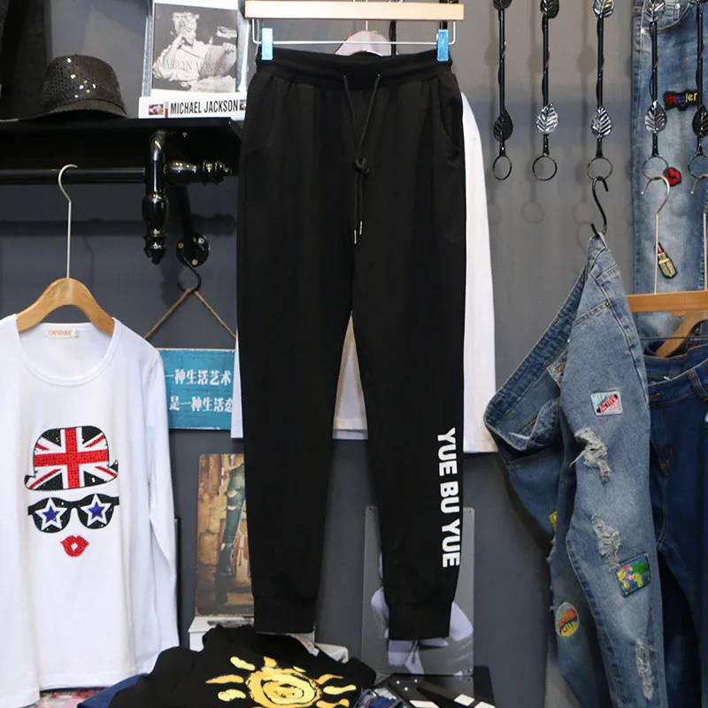 Модные новые женские спортивные штаны 2022 года, весенние джоггеры, повседневные свободные шаровары с буквенным принтом, брюки на шнурке с эластичной талией