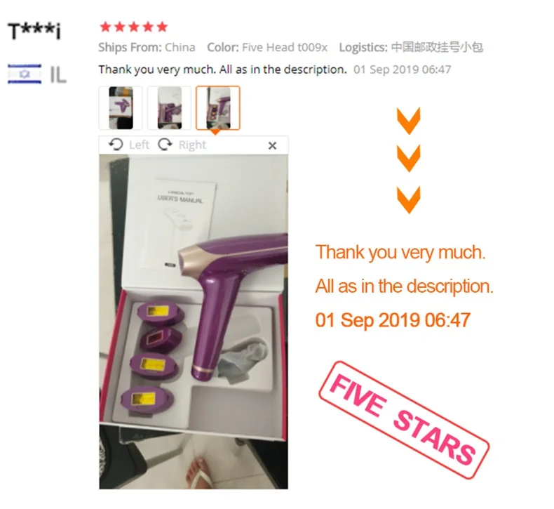Лазерный эпилятор Lescolton T009 имеет более 300000 раз лазерное удаление волос и более 100000 раз фоторегулирование при выборе ссылки обратите внимание на следующее:Две модели ламп: одна лампа для эпилятора (300000 вспышка), одна лампа для кожи (100000 вспышка) Всего: 400000 вспышка.Три модели лампы: две лампы эпилятора, каждая (300000 вспышки); Одна лампа кожи (100000 вспышки) Всего: 700000 вспышки.Четыре модели ламп: три лампы эпилятора, каждая (300000 вспышки); Одна лампа кожи (100000 вспышки) Всего: 1000000 вспышки.Lescolton 3в1 IPL лазерная Машинка для удаления волос лазерный эпилятор удаление волос перманентное бикини 5 уровней домашний электрический эпилятор лазерСпасибо, что выбрали новейший лазерный эпилятор Lescolton IPL, лазерный эпилятор для удаления волос, постоянное бикини, 5 уровней, домашний электрический эпилятор, лазер. По сравнению с другими популярными моделями, в этой модели используется высокоуровневая кварцевая лампа для удаления волос, чтобы иметь гораздо больше времени вспышкиРазличные подарки предоставляются для всех вариантов, некоторые дополнительные расходы на перевозку добавляются. Пожалуйста, сделайте выбор при покупке. В подарочной упаковке может не быть. Пожалуйста, не стесняйтесь обращаться к нам, если вы возражаете против этой проблемы1. Применимое: 100 ~ 240 В рабочее напряжение, подходит для всех стран мира.2. Перманентный: IPL работает внутри пор, уничтожает папиллу волос, тем самым достигает постоянного удаления волос3. Длительный срок службы: кварцевая лампа для удаления волос с более длительным сроком службы и долговечным использованием4. Нет расходных материалов, нет среды, нет расходных материалов5. Безболезненный: пять регулируемых оптимальных уровней энергии в соответствии с терпимостью кожи. Обеспечивает мягкое лечение безболезненно и легко, не повреждая кожу. Светодиодный свет ясно показывает уровень энергии.6. Быстрая и большая площадь обработки: 4,2 квадратных см размер пятна не слишком большой или не слишком маленький для любого изгиба тела, высокая эффективность и быстрая скорость, которая занимает всего несколько минут, чтобы удалить пересекающиеся волосы, которые трудно для традиционного способа удаления волос7. Безопасность: не влияет на нормальный пот и секрецию кожного сала8. Удобно: портативный знак и легко берется9. Способность обнаружения кожи: ярко-зеленый светодиод загорается, когда устройство готово к работеОперация интервал советыИспользуйте два раза в неделю в начале.Когда волосы перестанут расти или только некоторые тонкие волосы растут, используйте по крайней мере 1 раз в месяц для поддержанияЧастота использования может отличаться в зависимости от индивидуальной ситуацииИзменение времени работы в соответствии с фактической плотностью волос. Интервал работы варьируется в зависимости от индивидуальной сиютации.В комплект входит:IPL Машинка для удаления волос 1 штЛампа для лазерного эпилятора x 1 шт. или x 2 шт. или x 3 шт.Фотолампа (тип стекла) x 1 шт.Защитные очки для защиты глаз x 1 шт.Адаптер с вилкой US, EU UK x 1 комплектРуководство по эксплуатации на английском языке x 1 шт.Из-за различных партий цвет линз для удаления волос может отличаться.Примечание:Таможенные пошлины/НДС не включены в цену,. Все интернет-магазины одинаковы. Мы не несем ответственности за любые таможенные проблемы и таможенные пошлины. Все клиенты 