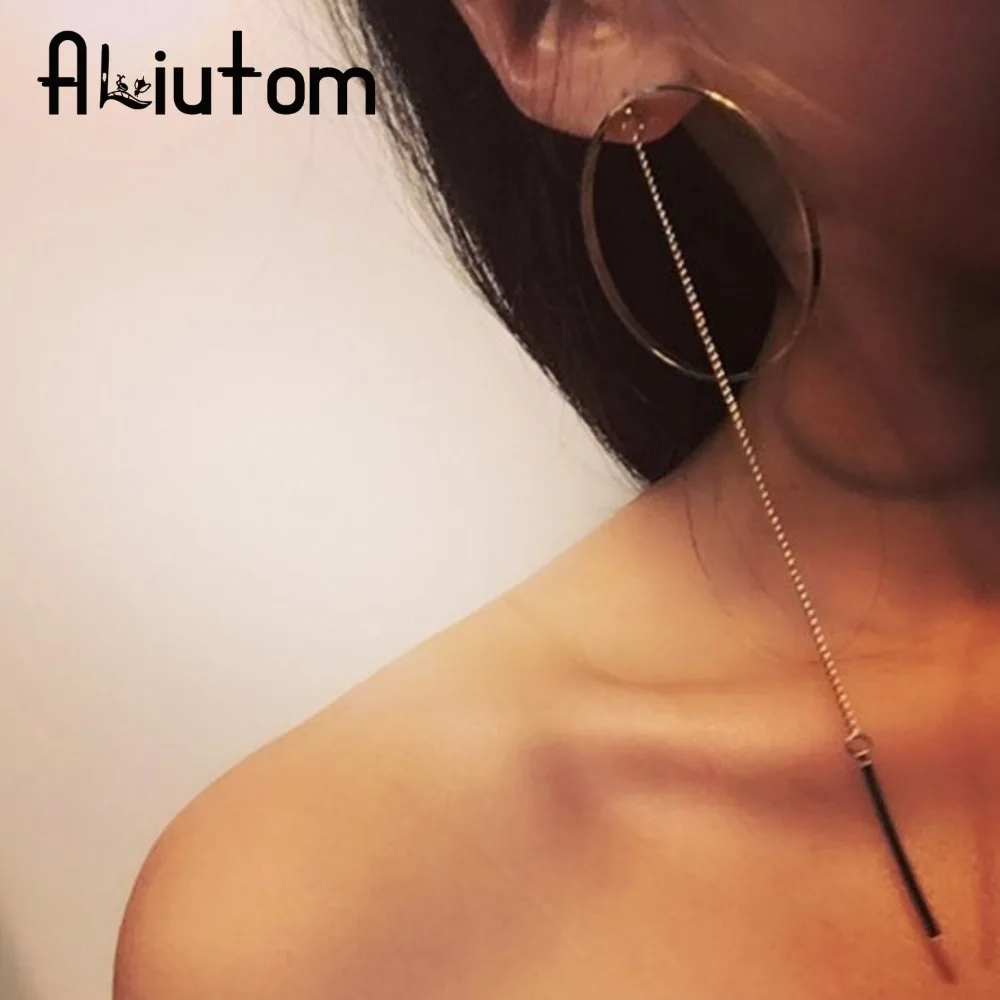 ALIUTOM, уникальные большие круглые серьги в стиле панк, подвески, длинные цепочки, Висячие серьги для женщин, бижутерия