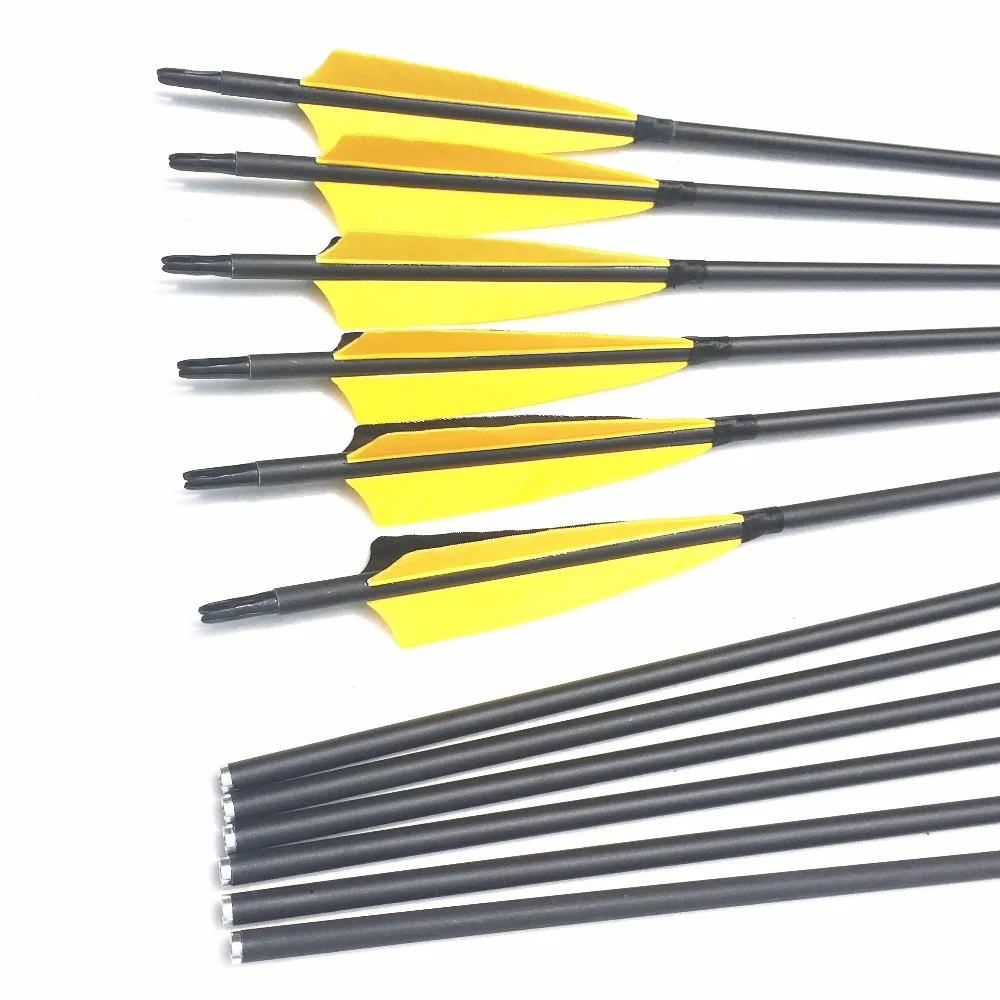 Стрелы карбоновые, 32 дюйма, 20-80 фунтов, черные и желтые перья, 61224 шт.