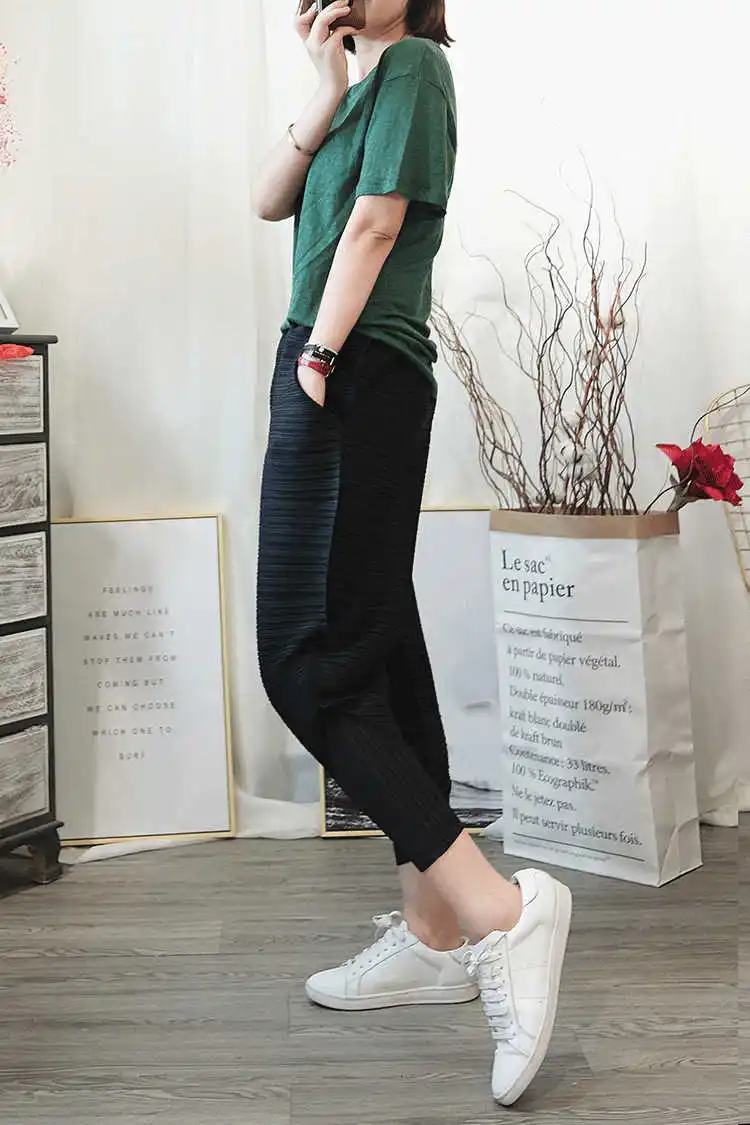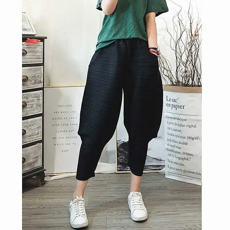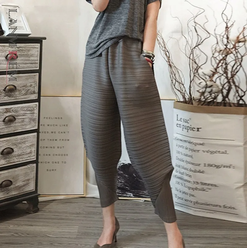 LANMREMосень 2022 г.; Новый узор; Эластичная резинка на талии; Плиссированные однотонные свободные дамские шаровары; BA696