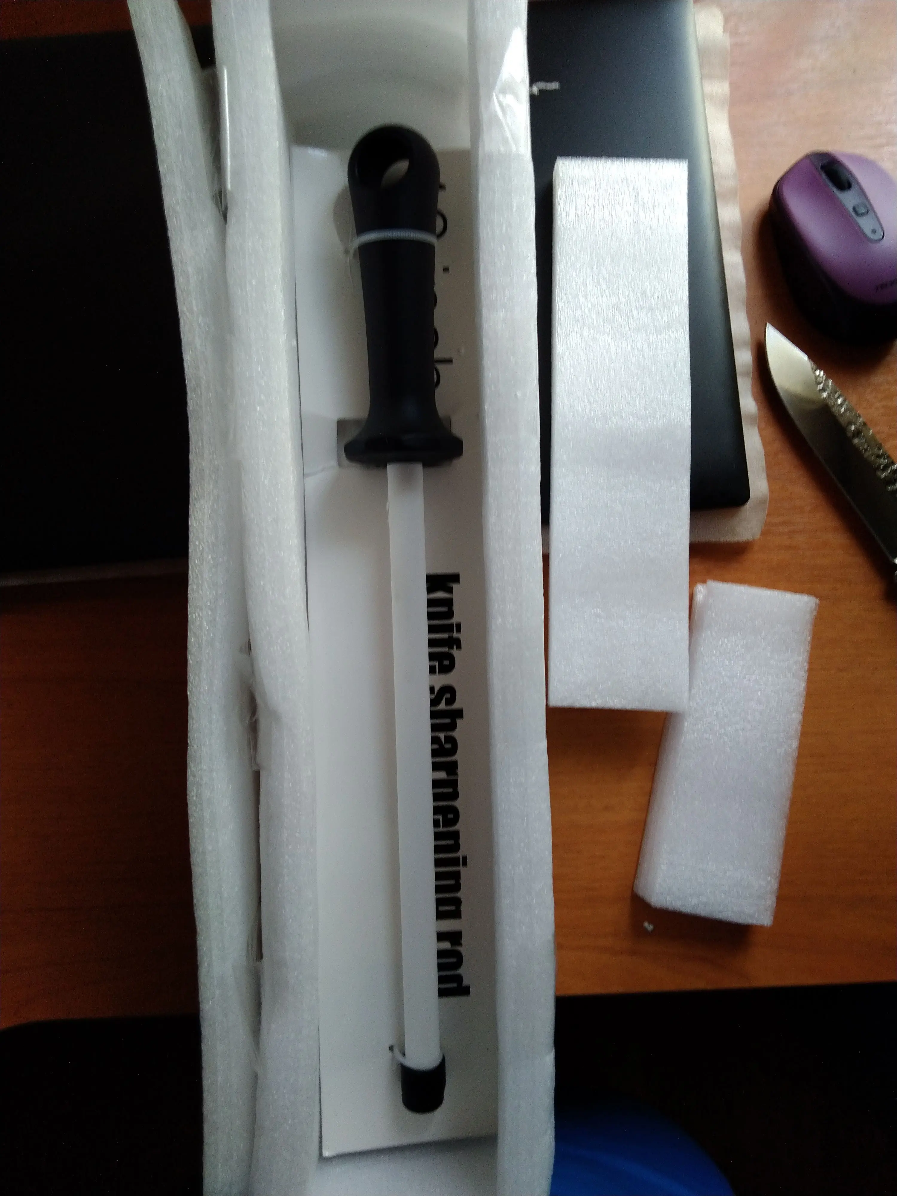 Сталька приехала только после того как я открыл спор, до этого объездила весть Китай, думал приедет поломаная на 10 кусков ... ан нет - всё целое! В отличии от стального мусата - керамический "тянет" нож прям жестко, что хорошо - меньше движений нужно делать :)