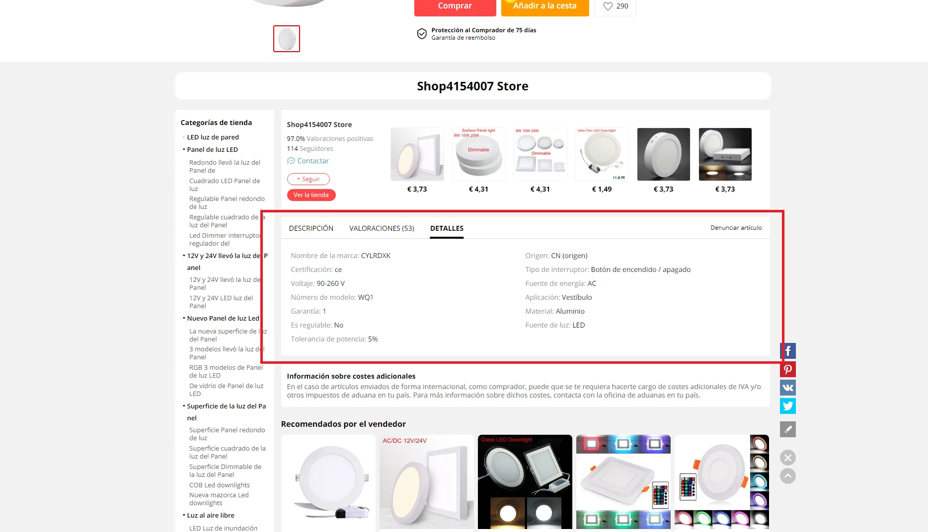 Плохое качество. Не соответствует тому, что описано. Качество лампочек ниже, чем у других, у него нет радиатора на контуре, как будто у них есть другие, сам основание, чтобы поставить поверхность, он застрял внутри, и там они прилипают к светодиодной полосе (без радиатора, Это просто гладкая чала, как та, что вы видите на всей внешней контуре фокуса), она едва весит, это не то, что другие тяжелее, но если они более прочные, Я заказал 3 лампочки, и вместе они едва весили 1 кг. Фактическая мощность также не соответствует тому, что было объявлено, и при tolérance ± 5%. В моем случае я купил 3 лампочки по 25 Вт, и Фактическая мощность была 17,2 Вт, несмотря на объявление маржи по ± 5% (в этом случае это будет ± 1,25 вт, то есть минимум 23,75 Вт и максимум 26,25 Вт). Лампочки не имеют никакой информации о параметрах (люмен, мощность, хроматический фактор... ничего), они приносят только коробку каждого фокуса, и она должна быть напечатана. My recommendation is to Find Another reliable and Quality seller, Eye That This has More stores.