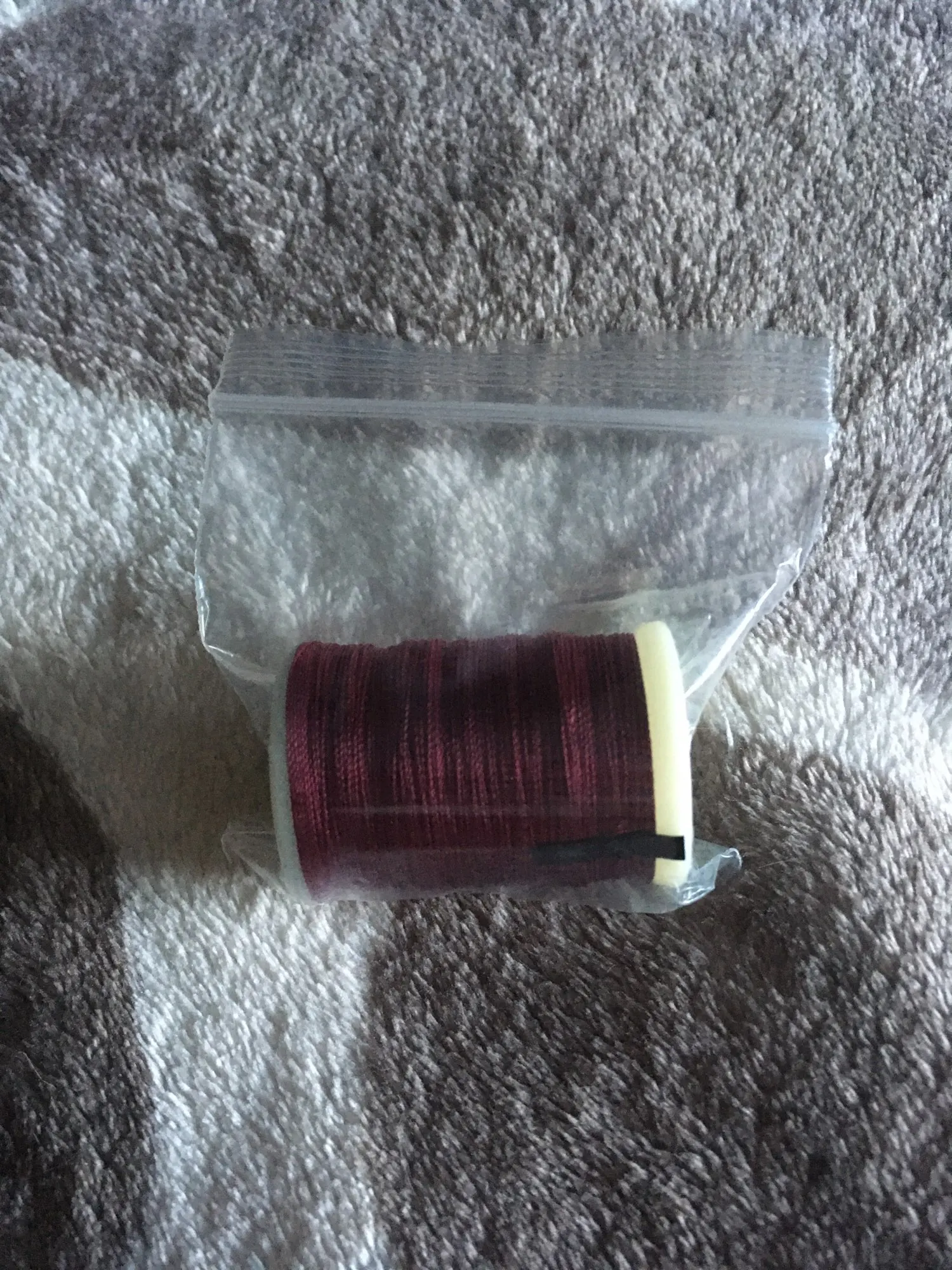 нить хорошая, плотная, не ворсистая. черная и белая чуть тоньше чем коричневая и фиолетовая. на катушке намотка рыхлая