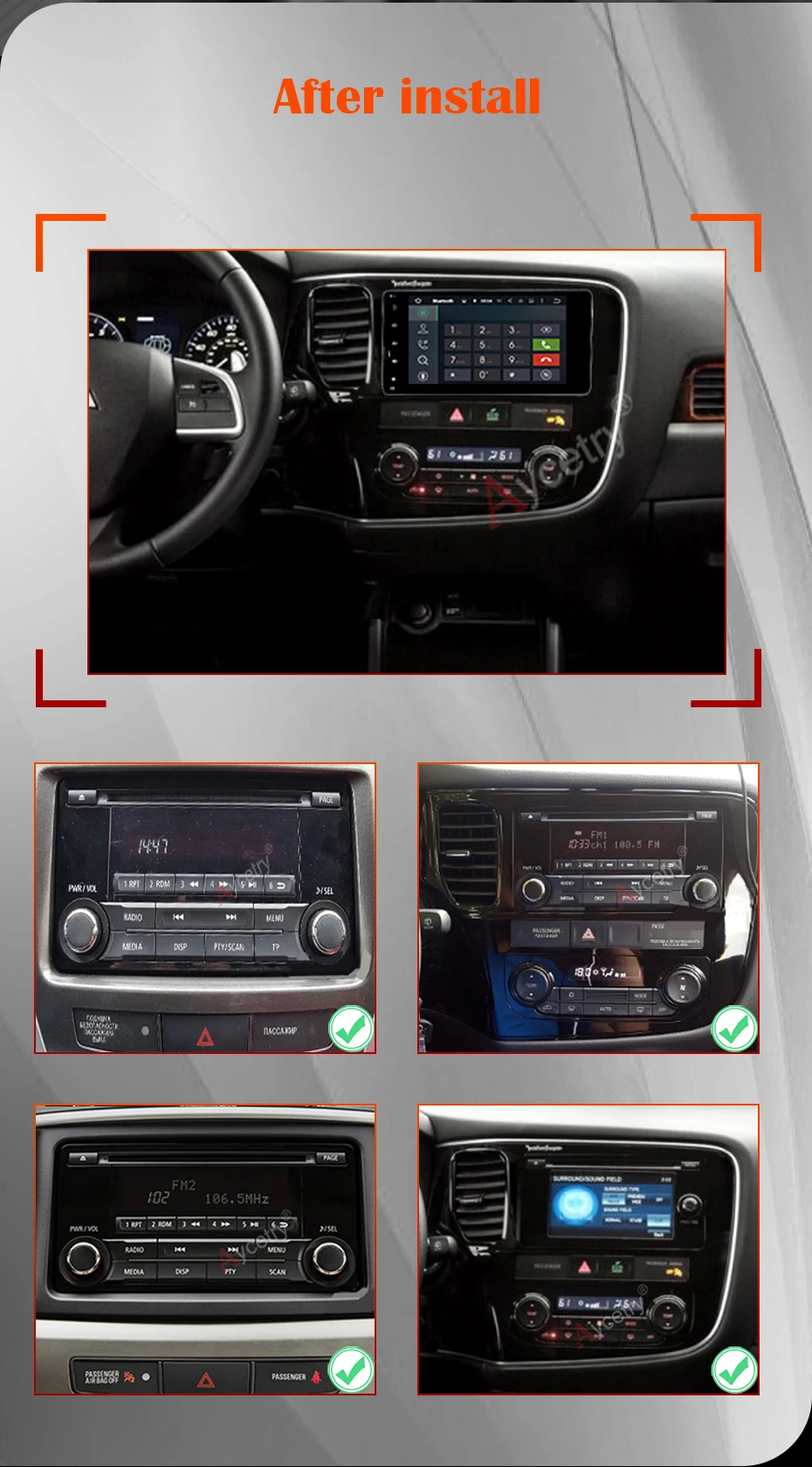 Он включает встроенную функцию радио, поддерживает FM AM RDS (в настоящее время только в странах Европы есть сигнал RDS, в других странах можно использовать FM AM). У него лучший радиосигнал. Перед использованием радио, пожалуйста, не забудьте подключить ANT line к другой ANT line или AMP line, если вы забыли подключить эту линию, радиосигнал очень плохой.