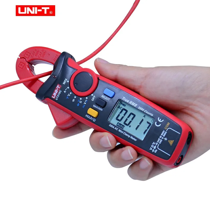 UT210E от UNI-T-это мини 100A True RMS Автоматический диапазон цифровой клещи с 2000 счетом дисплея и функцией VFC. Удобно использовать в узком пространстве.