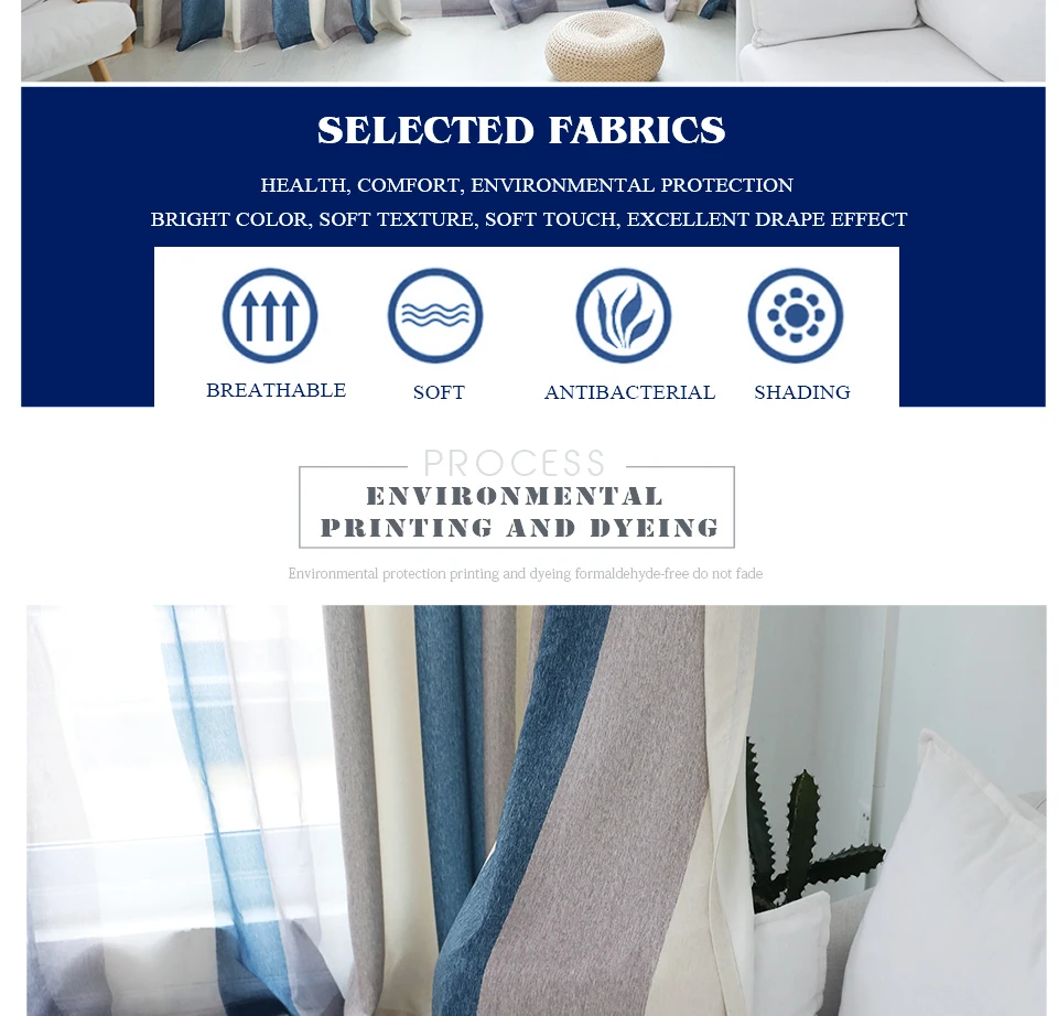 Затемняющие шторы в синюю полоску для гостиной, коричневые, в средиземноморском стиле, шторы для спальни, роскошные, из органзы