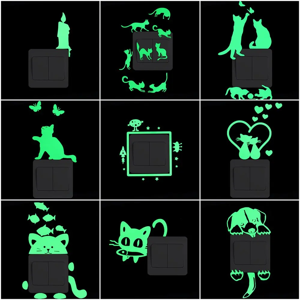 Мультфильм светящийся Переключатель наклейка светится в темноте наклейки на стену домашний декор Детская комната декоративная наклейка на стену Кот Фея Луна Звезда