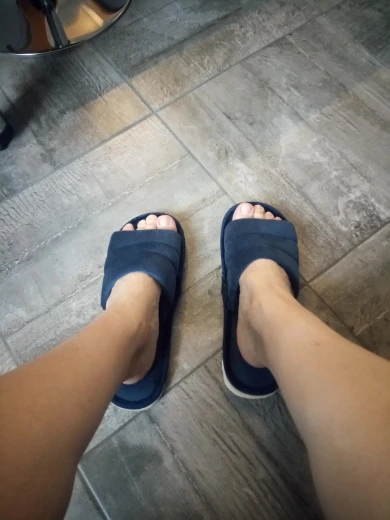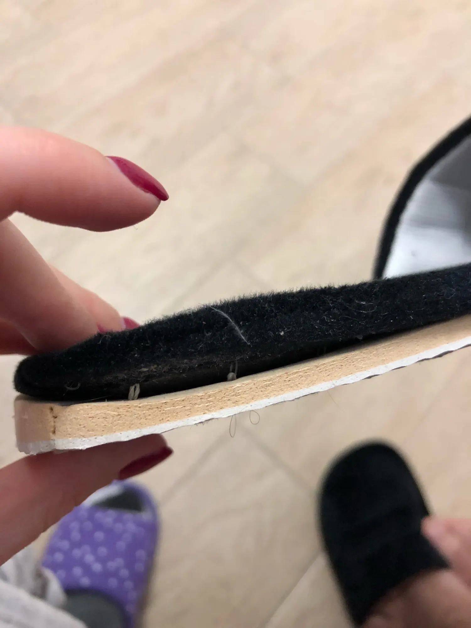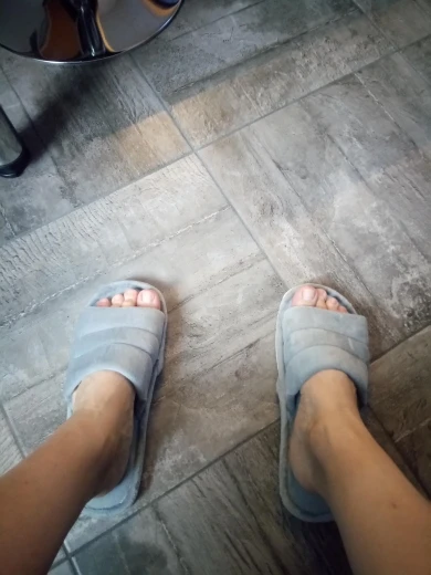 Не плохие тапочки, но ожидала лучшего качества. В целом довольна. Цвет яркий, как на фото. И мягкие. У нас на плитке скользят...