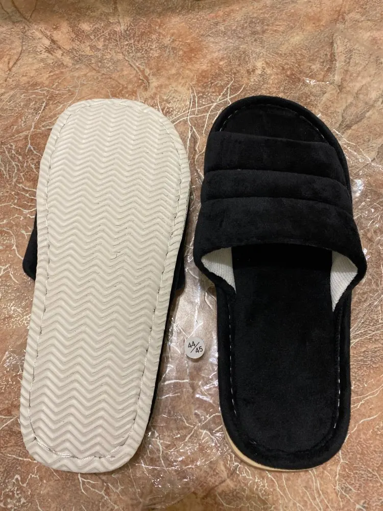 Хорошие, мягкие тапочки, очень приятные на ощупь. Нужно брать на 2 размера больше. Брала мужу 44/45 на 43 размер впритык, лучше бы еще на размер больше были.