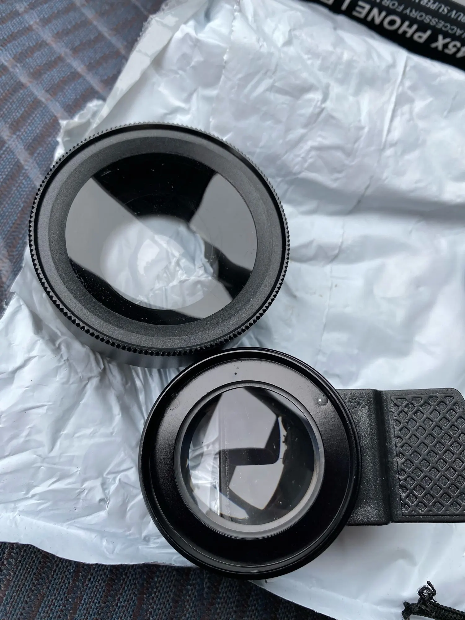 Объективы пришли, все отлично. Прикладываю фото с iPhone 7: 1. Первое фото пакета с камеры без объективов, 2. Второе фото макро + широкоугольный объективы, 3. Третье фото с макро объектива