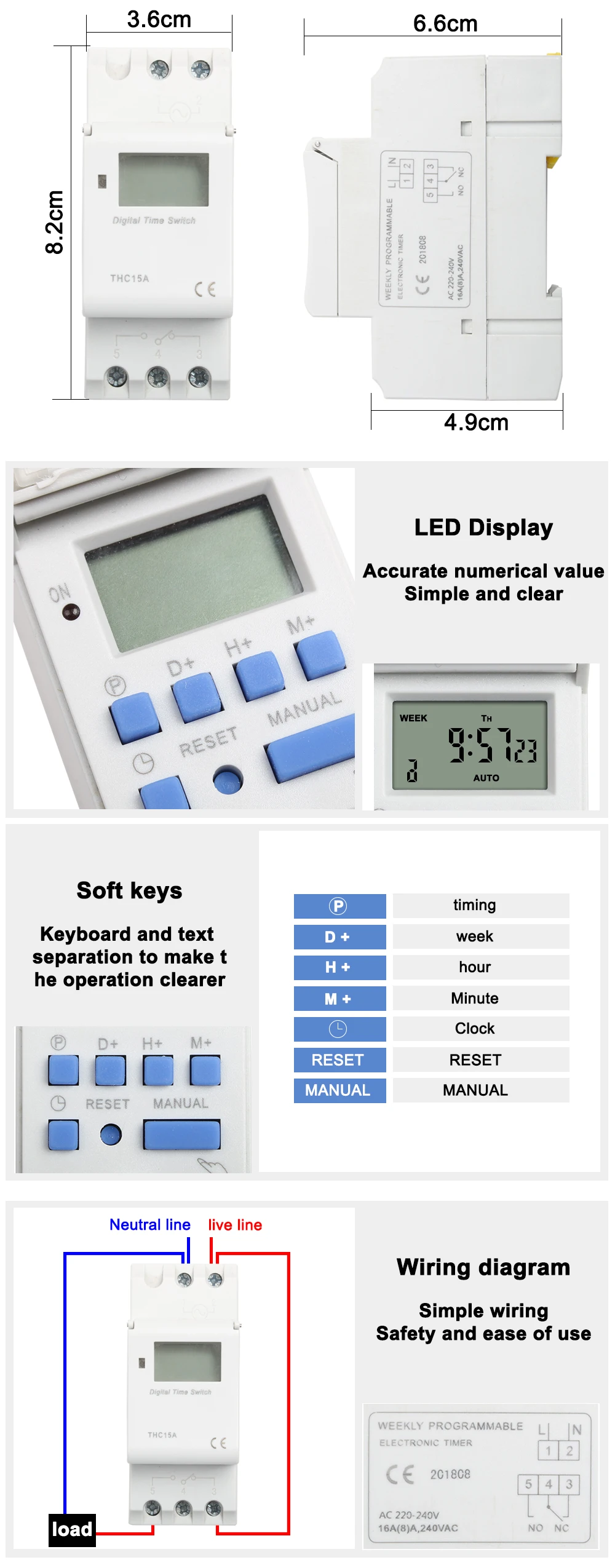 Электронный программируемый цифровой таймер на 7 дней, 220 В, 230 В, 6 А, 10 А, 16 А, Din-рейка tp8a16 без блокировки
