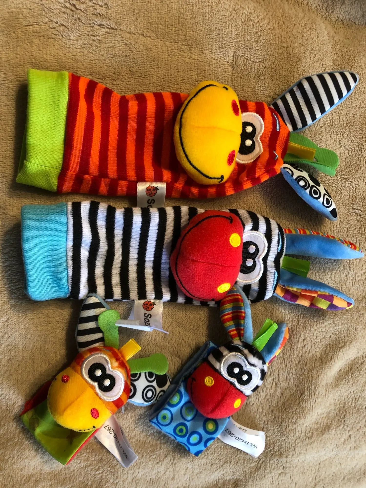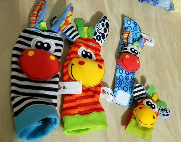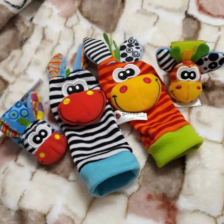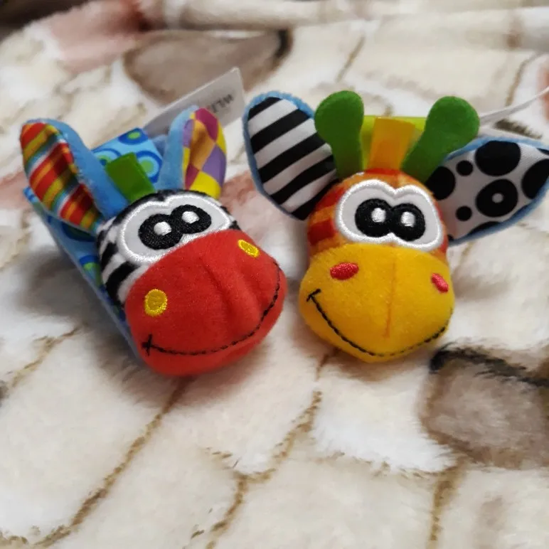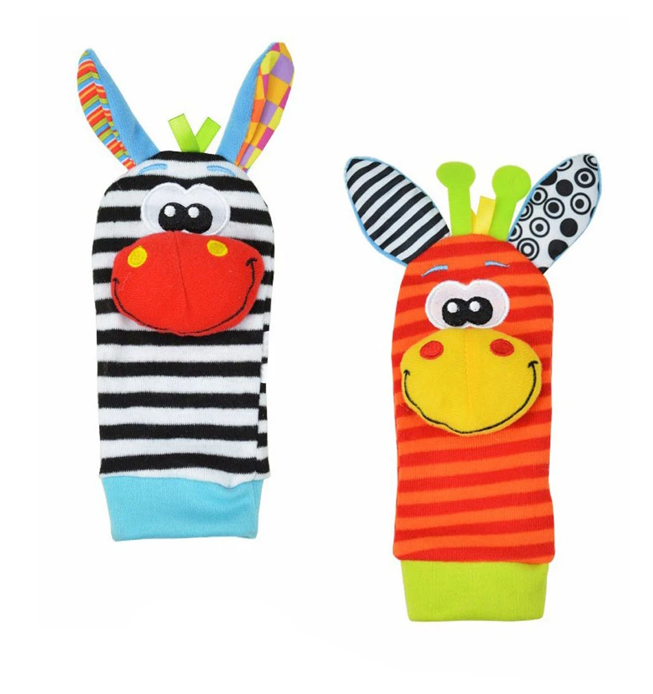 Носочки плюшевые с мультяшными героями, на запястье, для новорожденных, для детей 0-12 месяцев, детские игрушки-погремушки