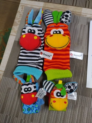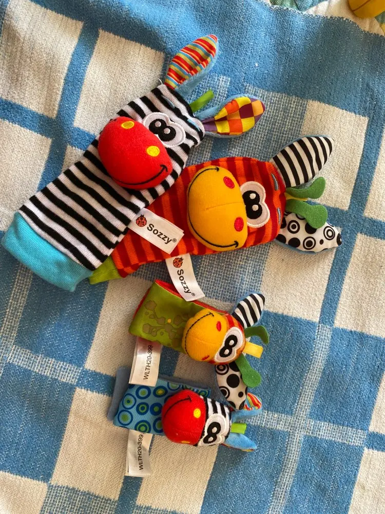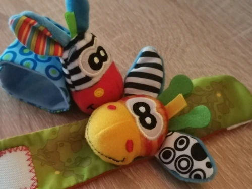 Отличные штуки. Синтетика, но гремят приятно) не сильно громко и не бесяче. Мы ещё до них не доросли, но думаю, малышу понравятся. При стирке не линяют. У нас такие стоят больше 100 грн. Пришли относительно быстро. Недели 2-3.