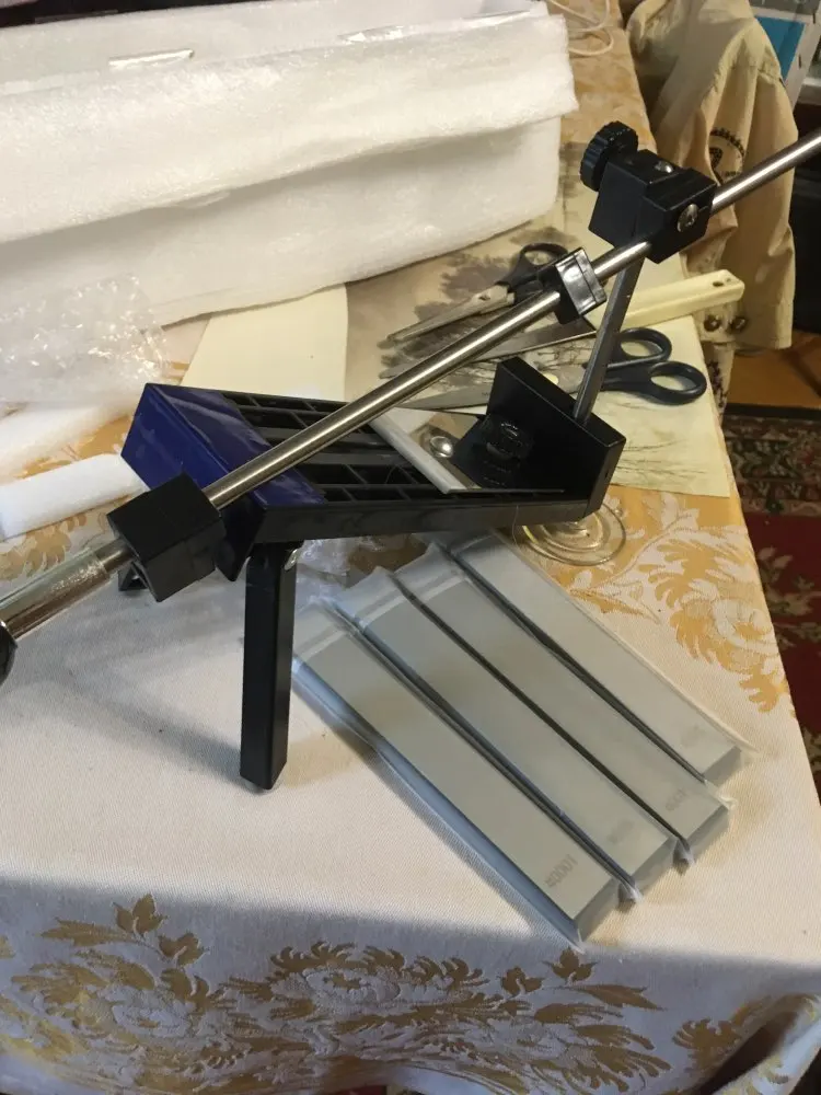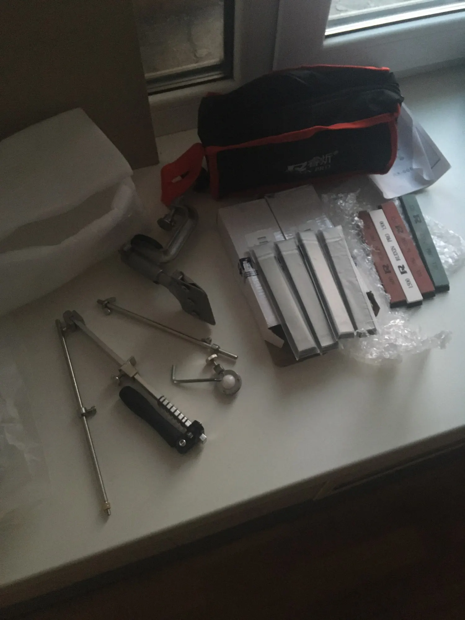 Хорошая вещь. Брал с комплектом алмазных точил. Наточил ножи без проблем, не надо быть мастером. Но один камень на 800 отвалился и раскололся, упав на пол, на первом же ноже.